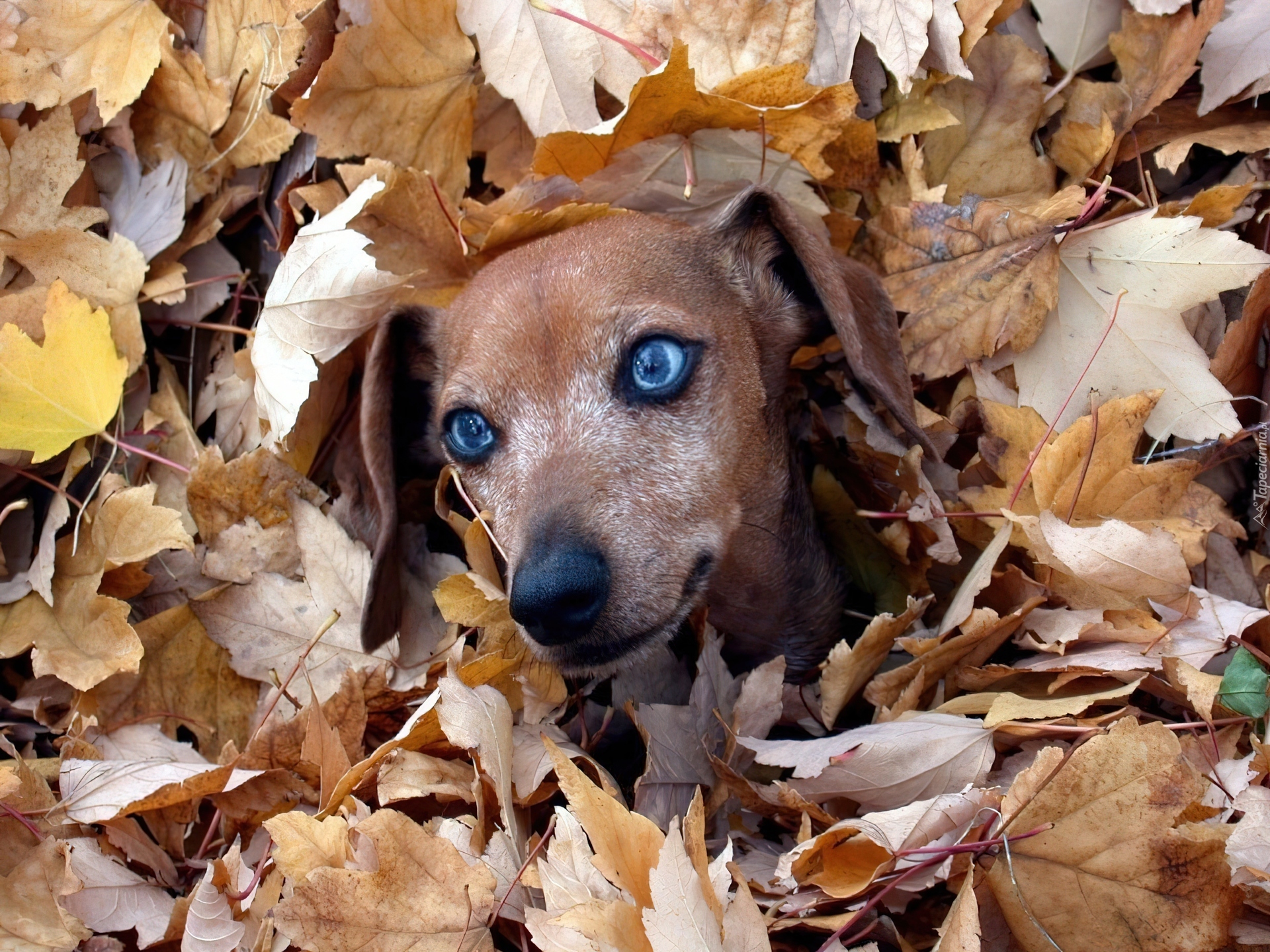 Edytor tapety: Pies, Liście, Oczy, Wyżeł weimarski