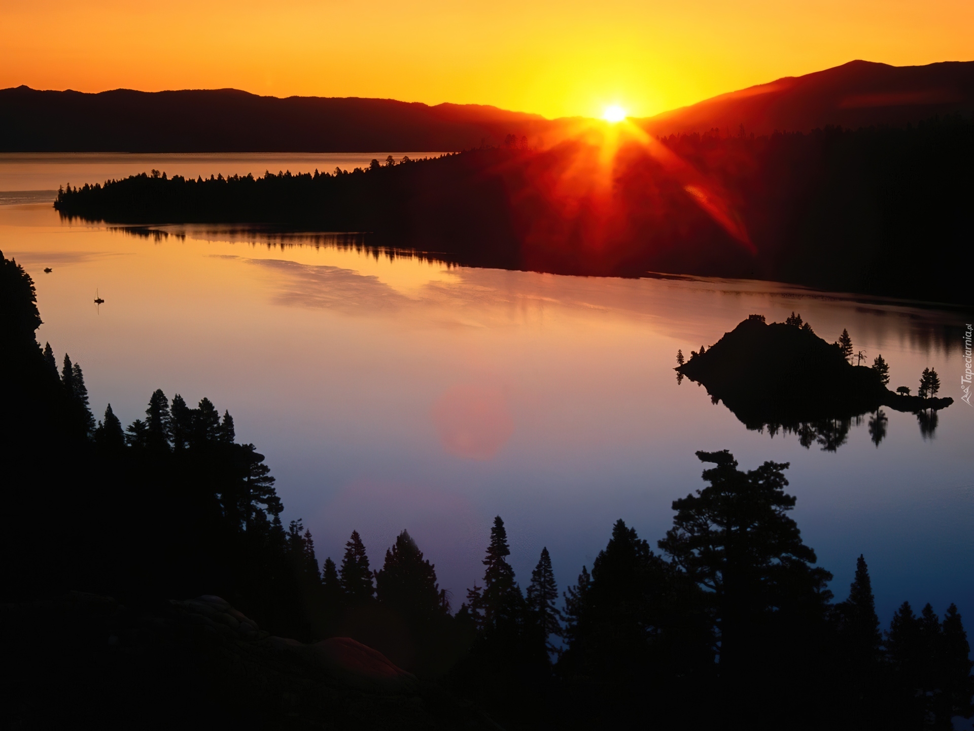 Edytor tapety: Rzeka, Lasy, Pagórek, Zachód, Słońca