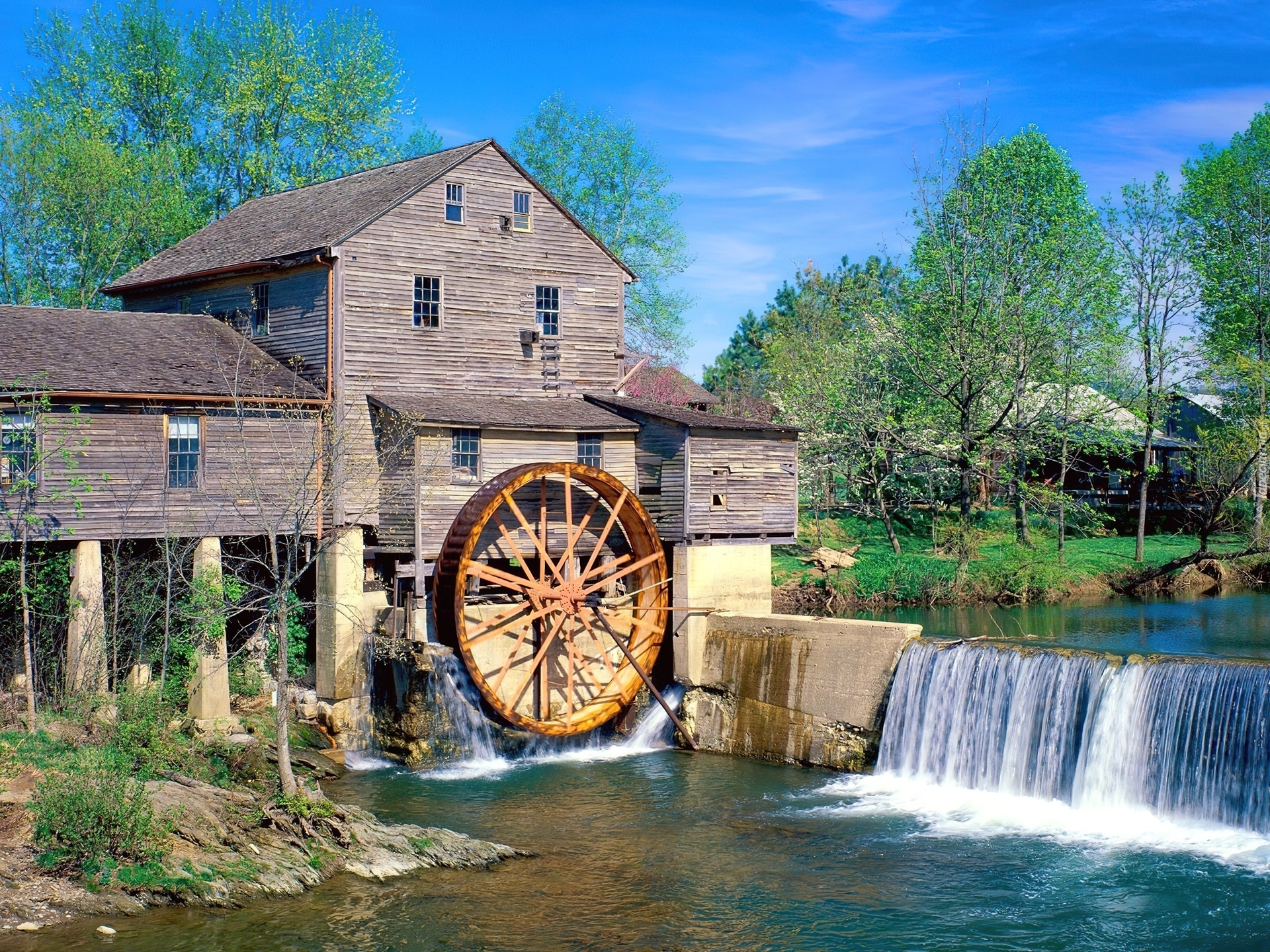 Edytor tapety: Młyn, Kaskada, Woda, Drzewa