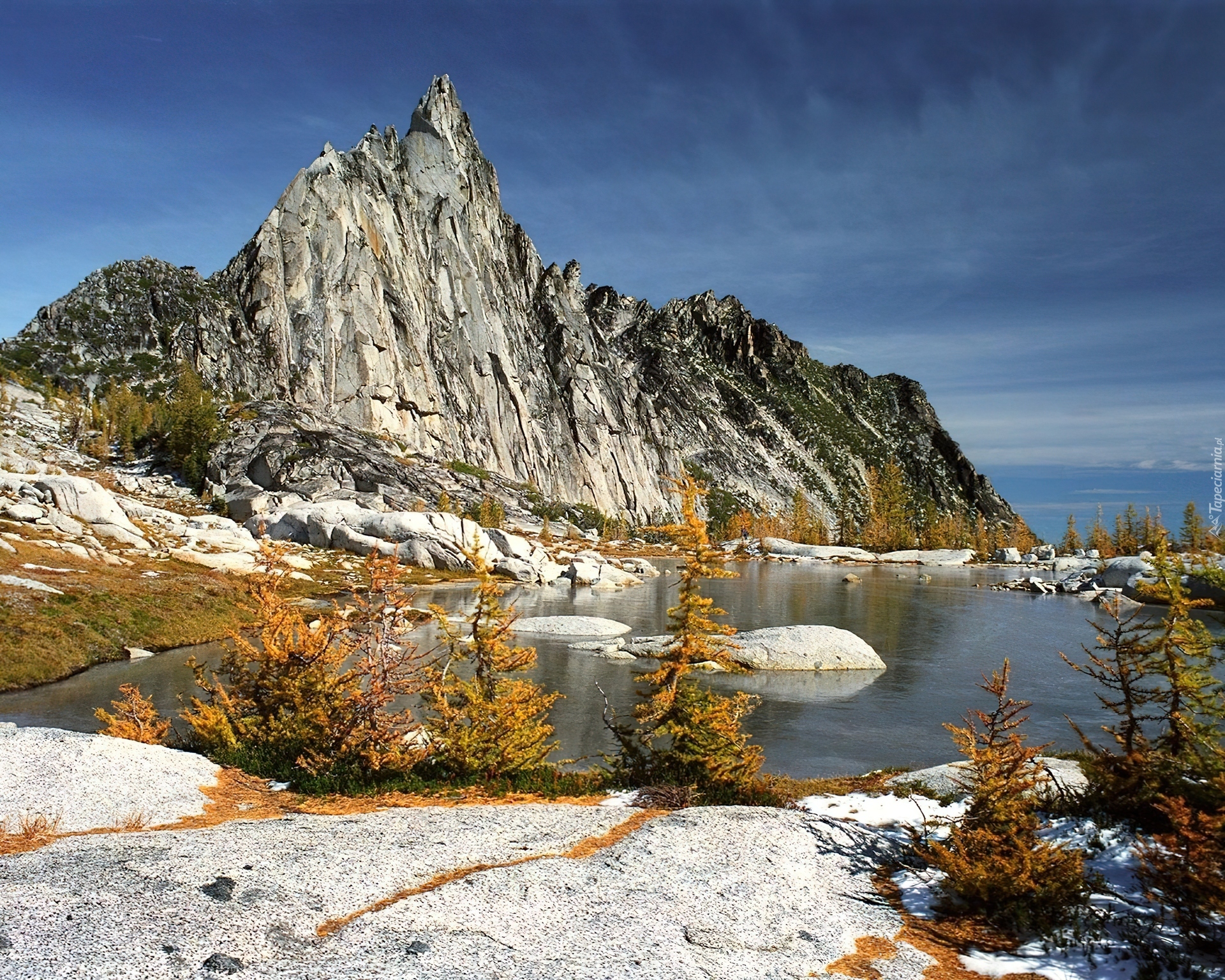 Edytor tapety: Góra, Jezioro, Skały, Kamienie, Rośliny