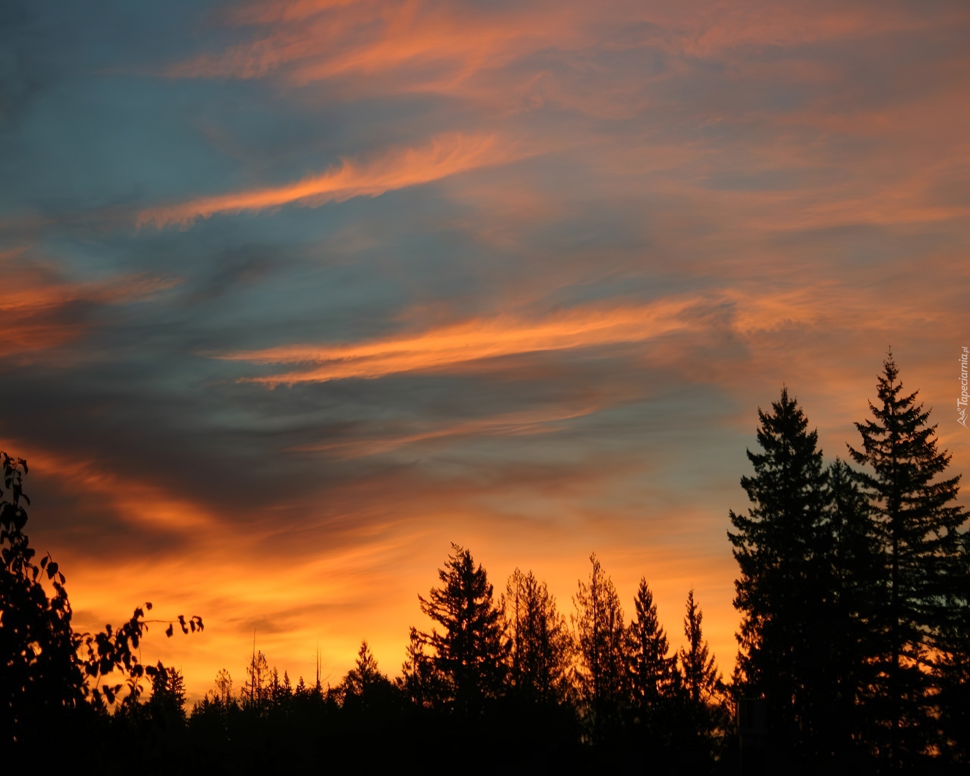 Edytor tapety: Zachód, Słońca, Promienie, Chmury, Las