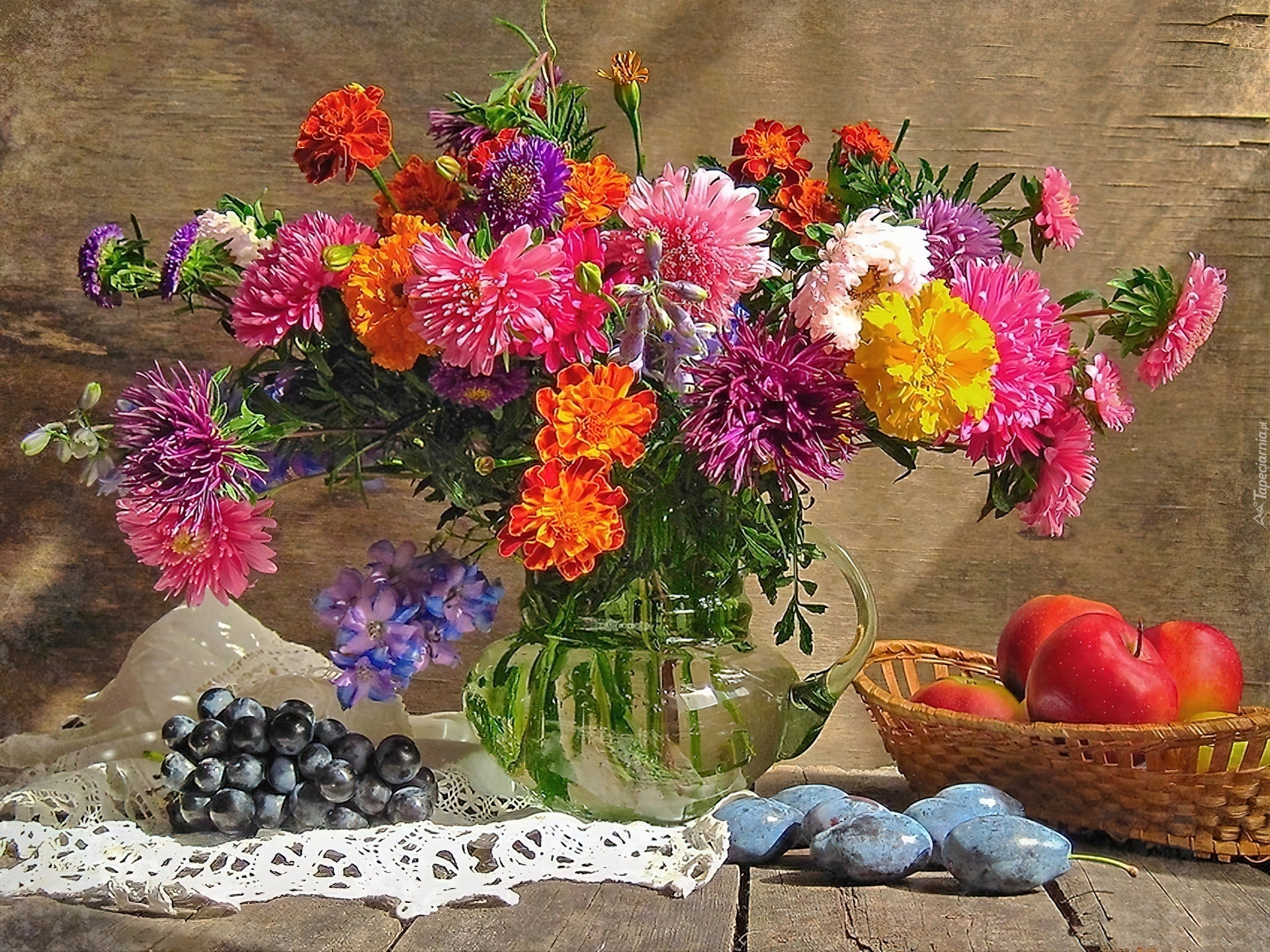 Edytor tapety: Bukiet, Jesiennych, Kwiatów, Owoce