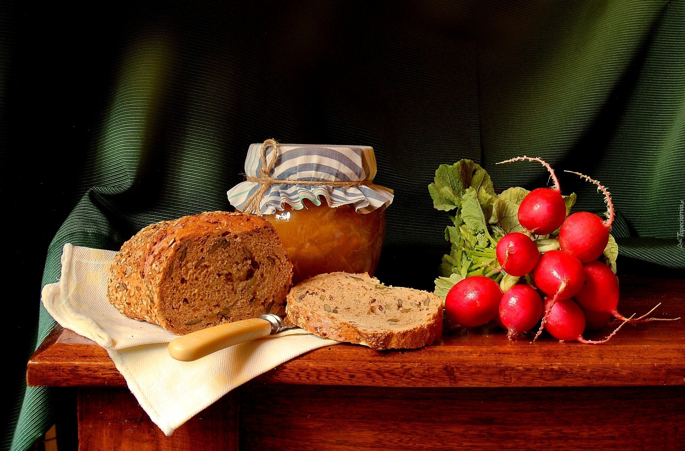 Edytor tapety: Dżem, Chleb, Rzodkiewki