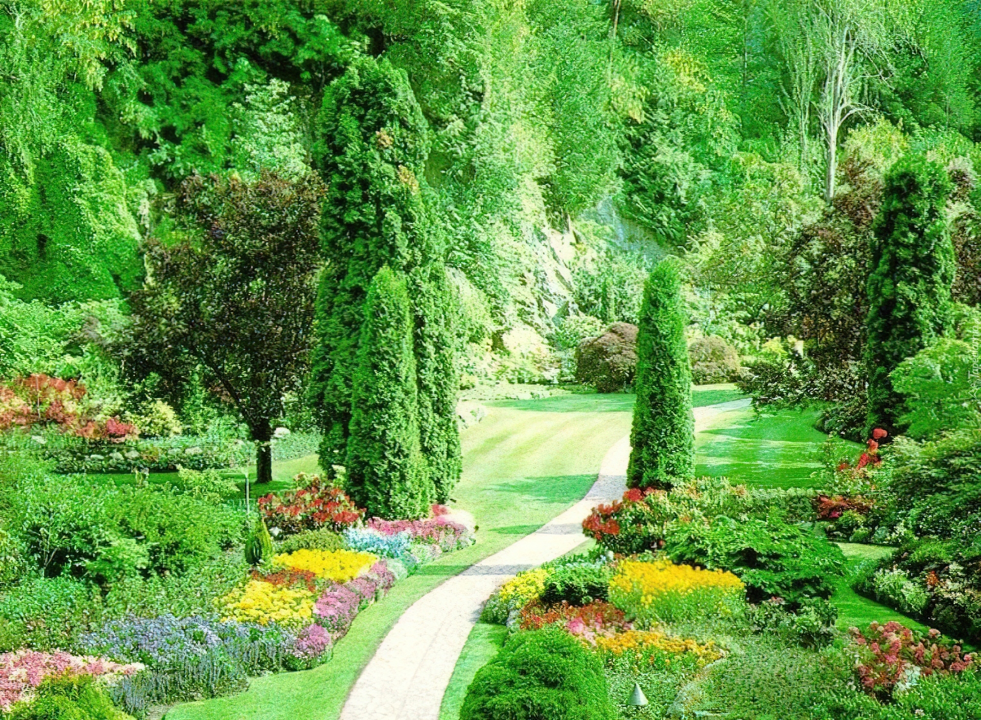 Edytor tapety: Piękny, Park, Alejka, Kwiaty, Krzewy, Drzewa