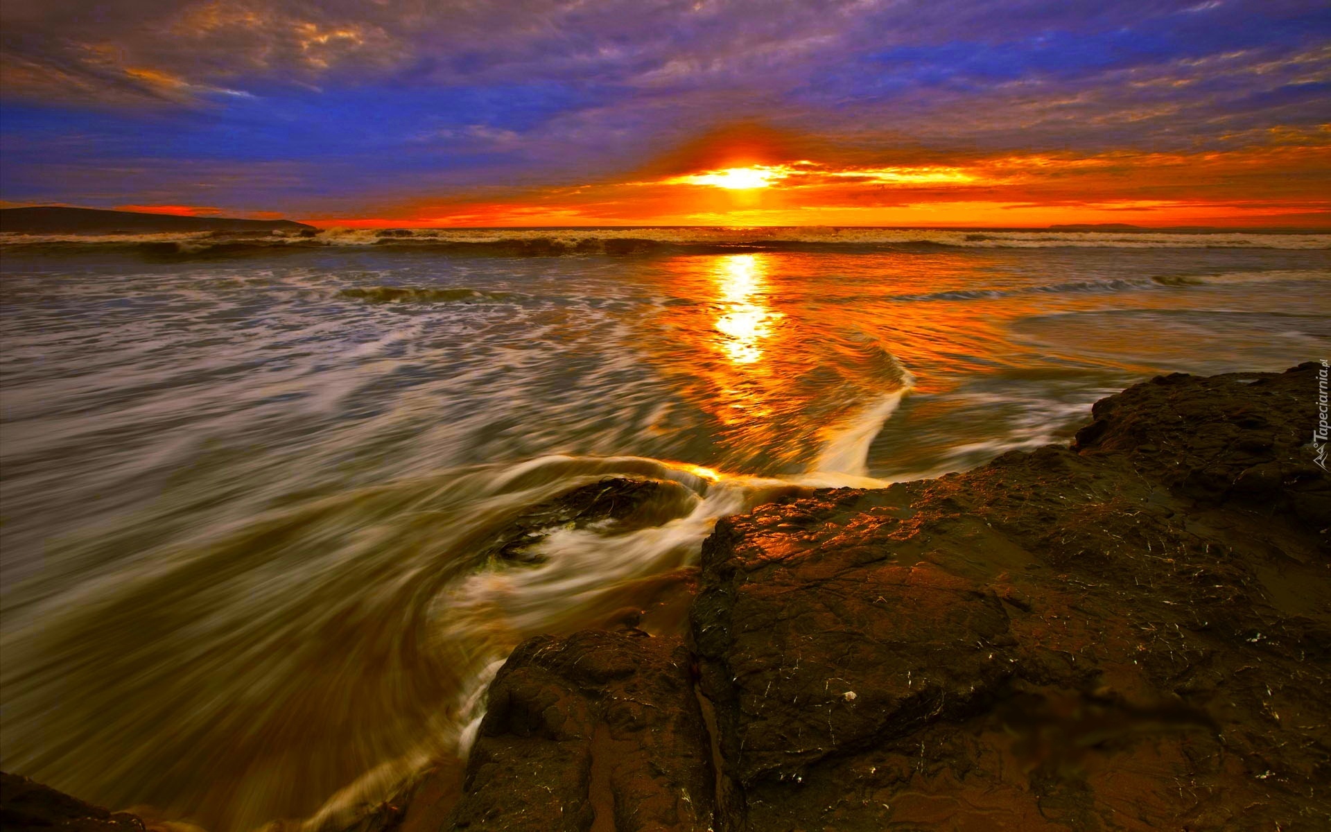 Edytor tapety: Zachód, Słońca, Morze, Skały