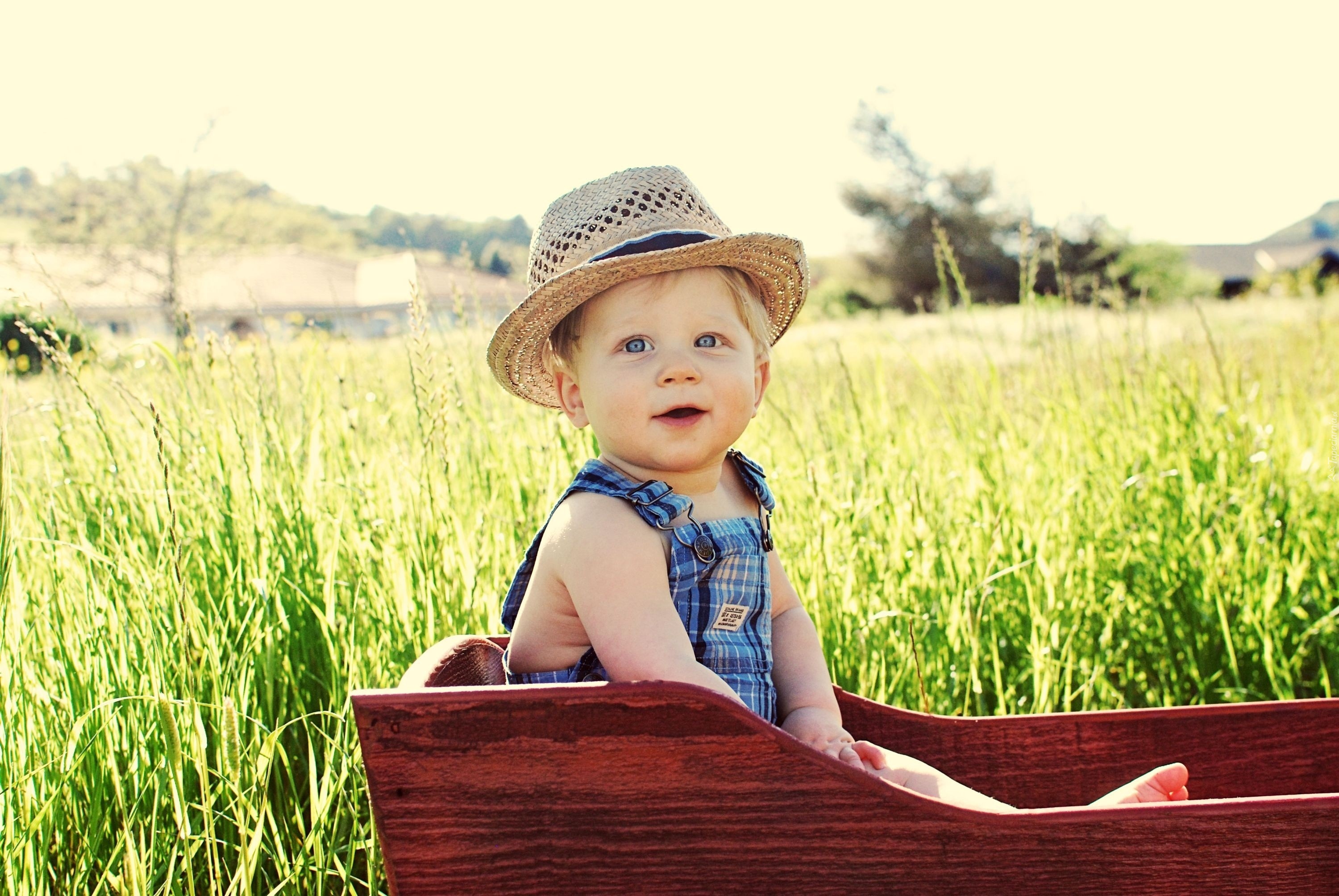 Edytor tapety: Chłopiec, Wózek, Kapelusz, Łąka