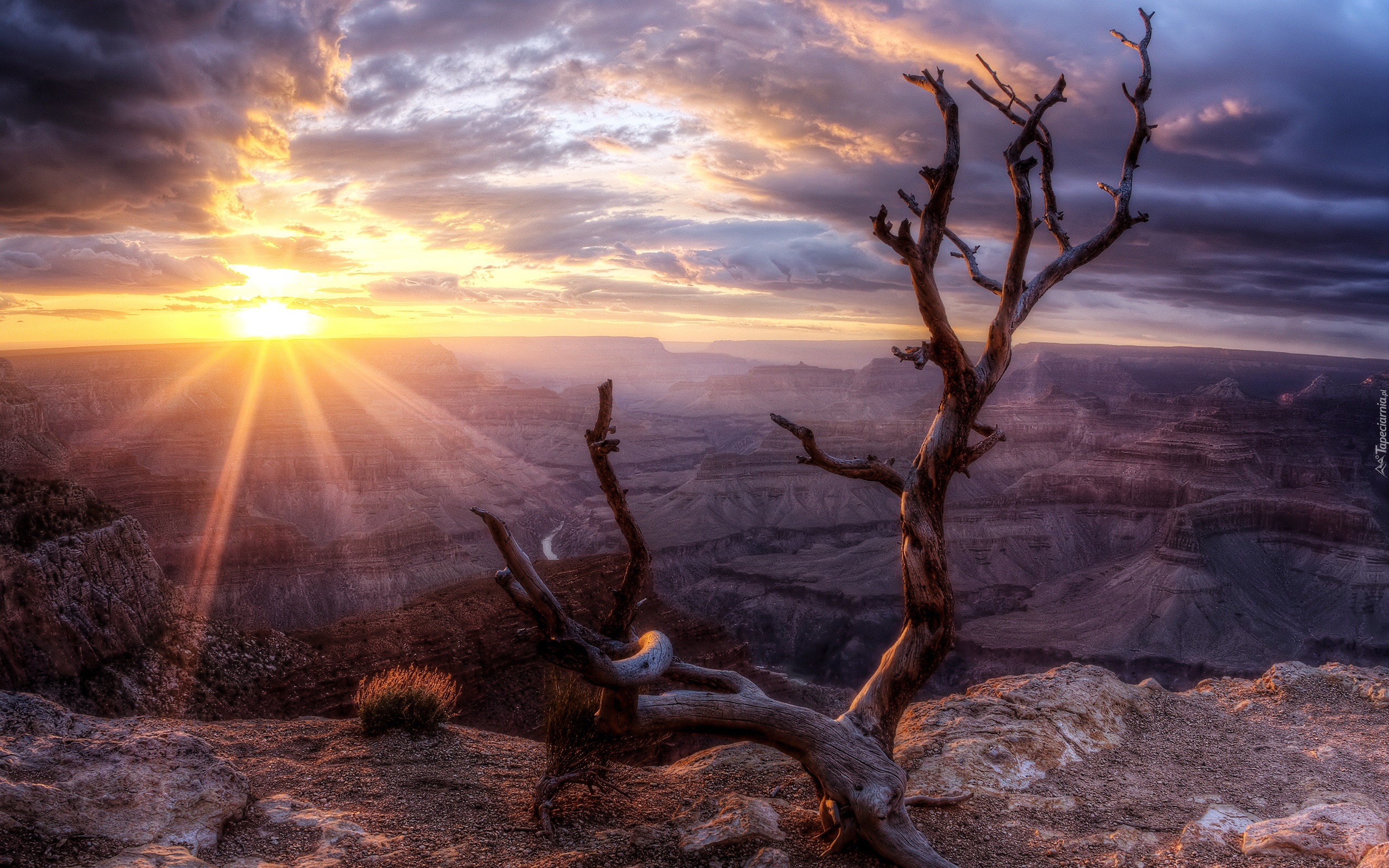 Edytor tapety: Skały, Promienie, Słońca, Suche, Drzewo