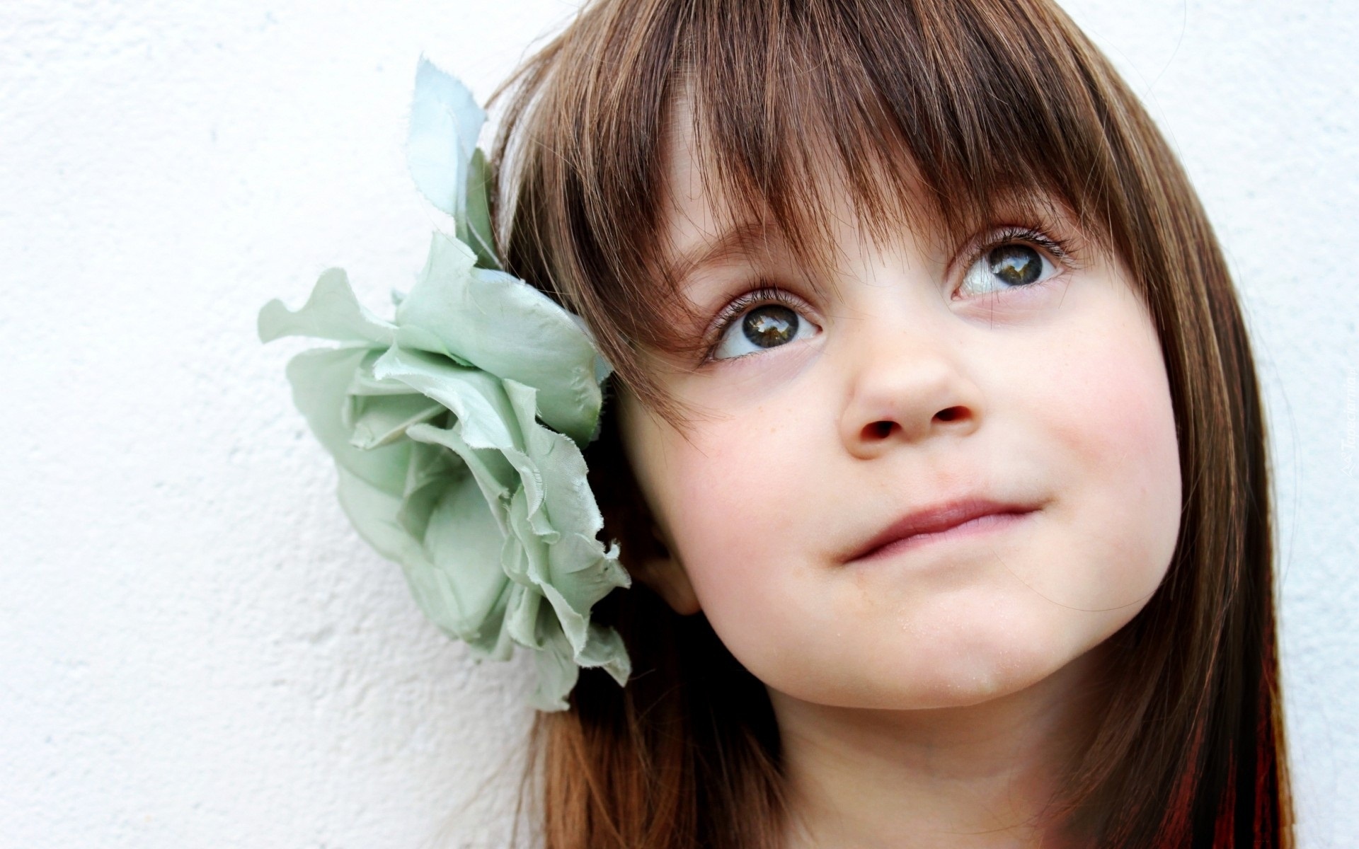 Edytor tapety: Dziewczynka, Uśmiech, Niebieski, Kwiat
