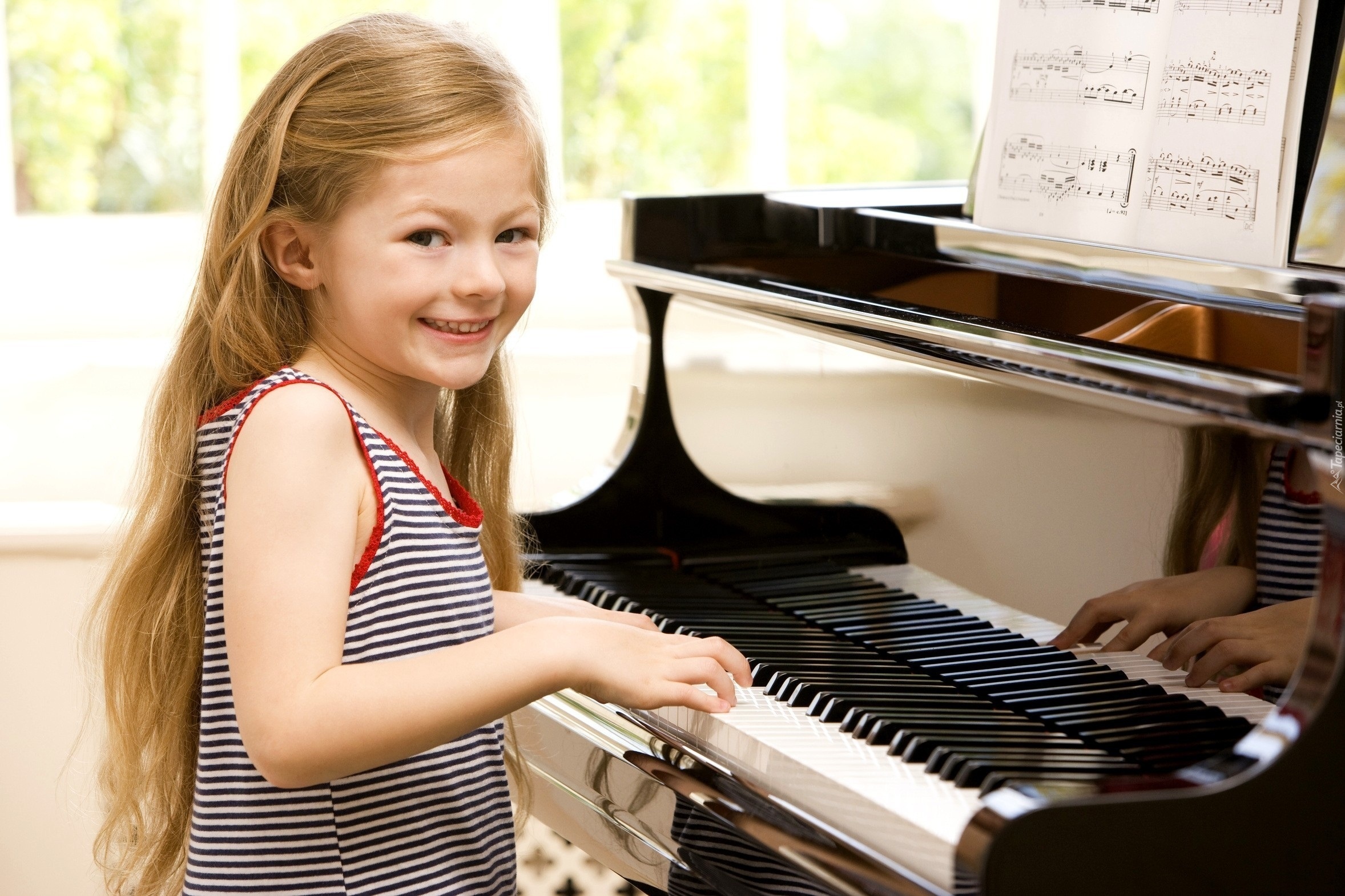 Edytor tapety: Dziewczynka, Pianino, Nuty, Uśmiech