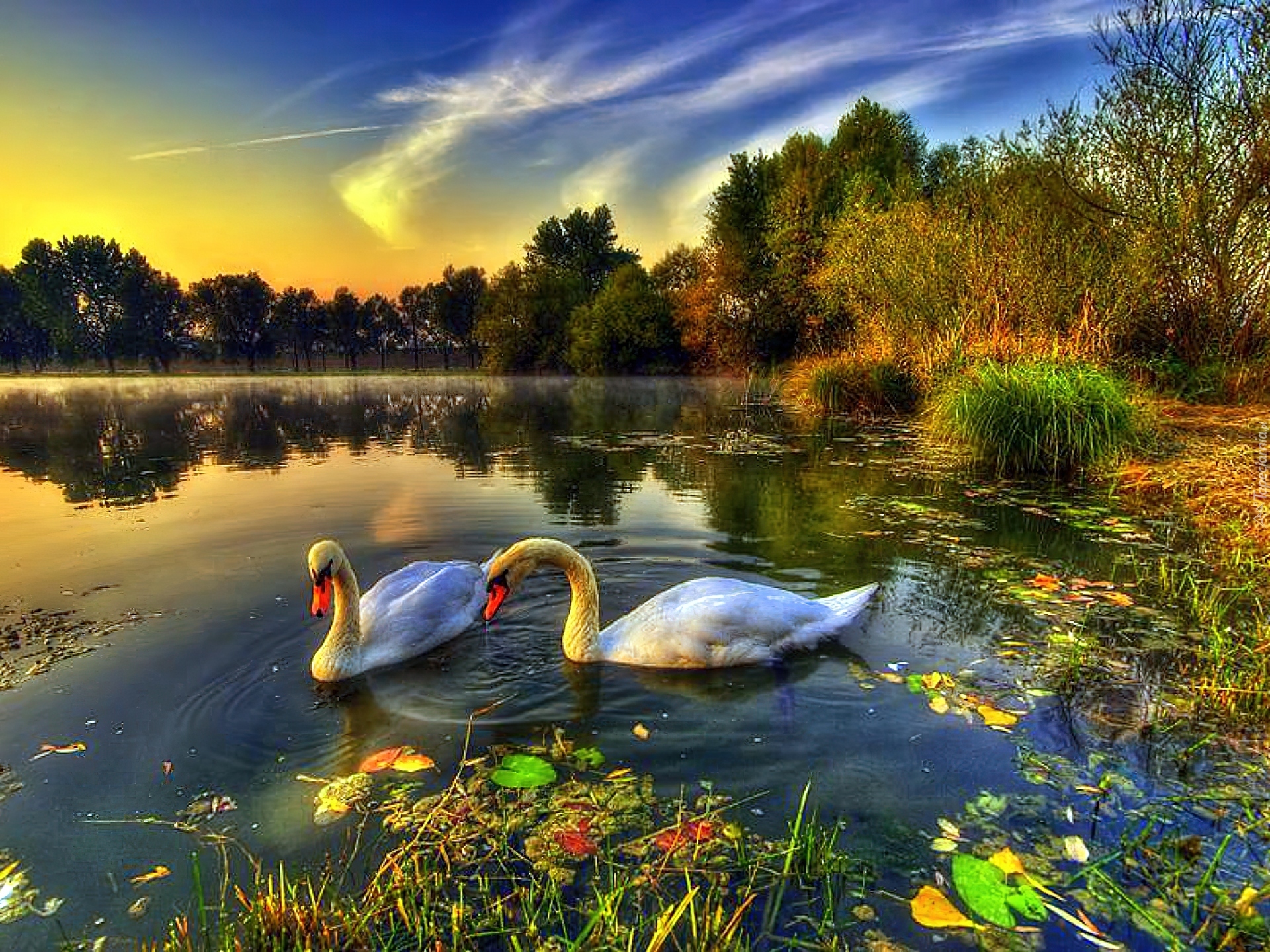 Edytor tapety: Łabędzie, Jezioro