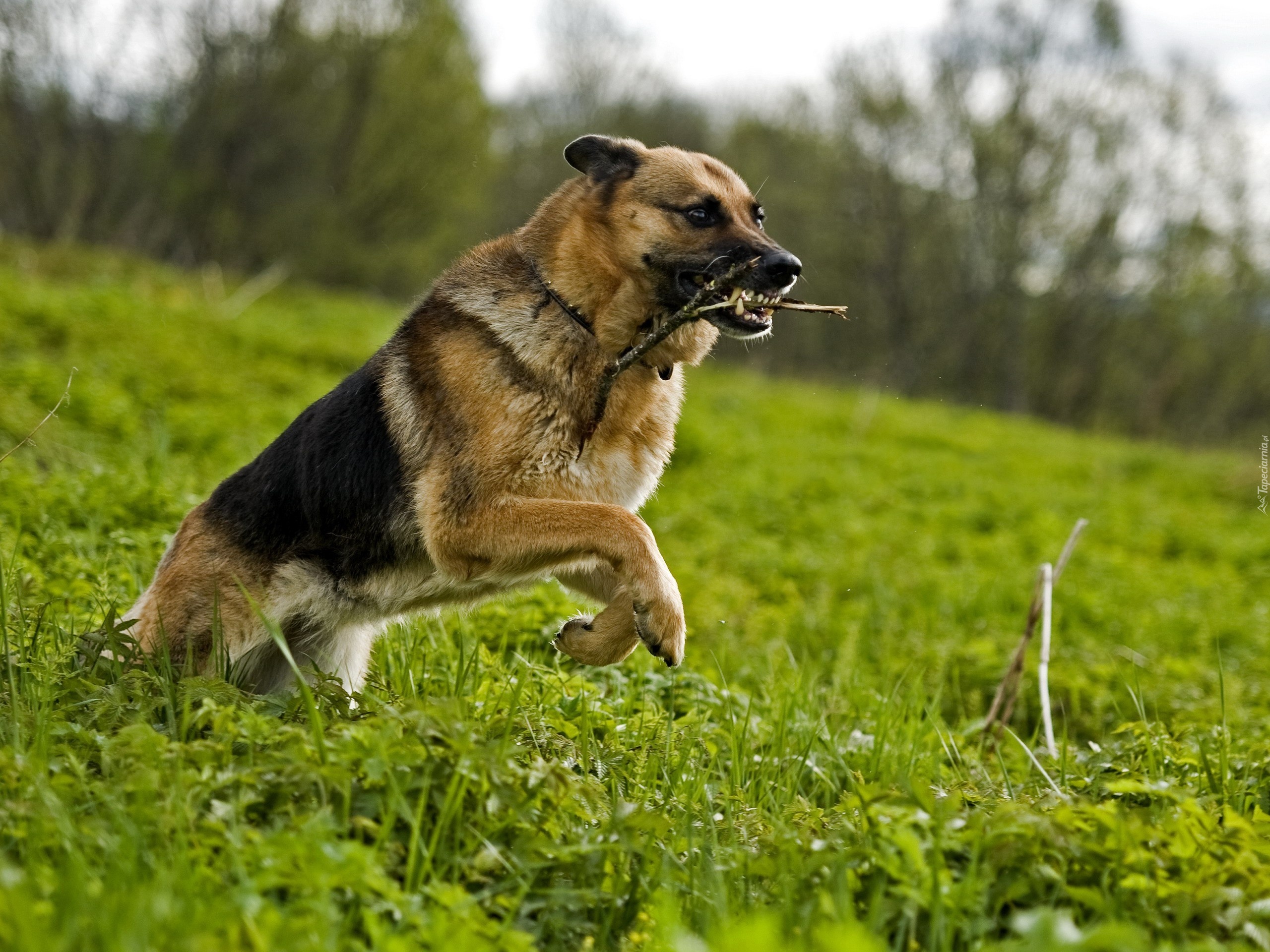 Edytor tapety: Pies, Zęby, Patyk, Trawa