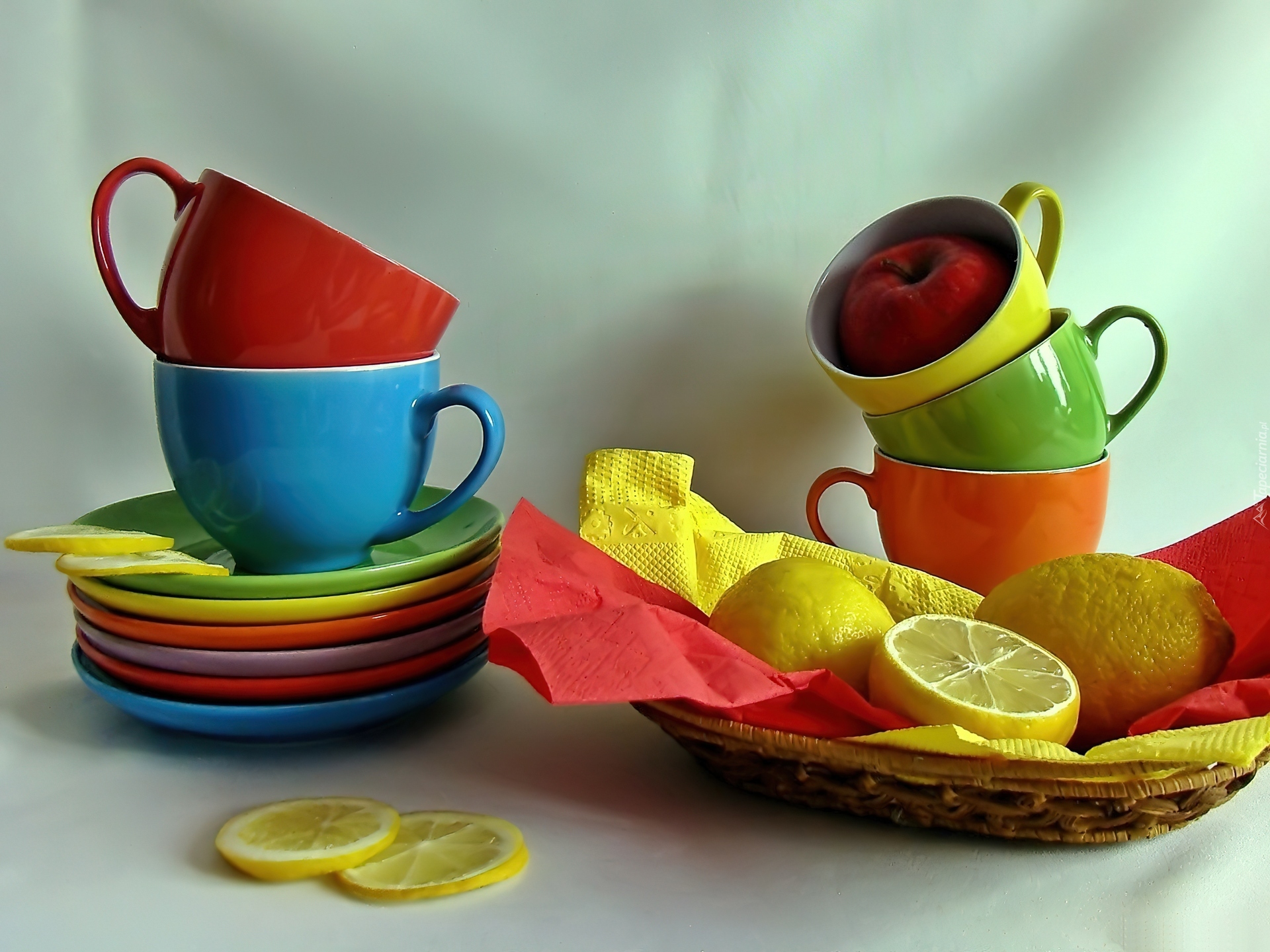 Edytor tapety: Filiżanki, Talerzyki, Koszyk, Cytrynki
