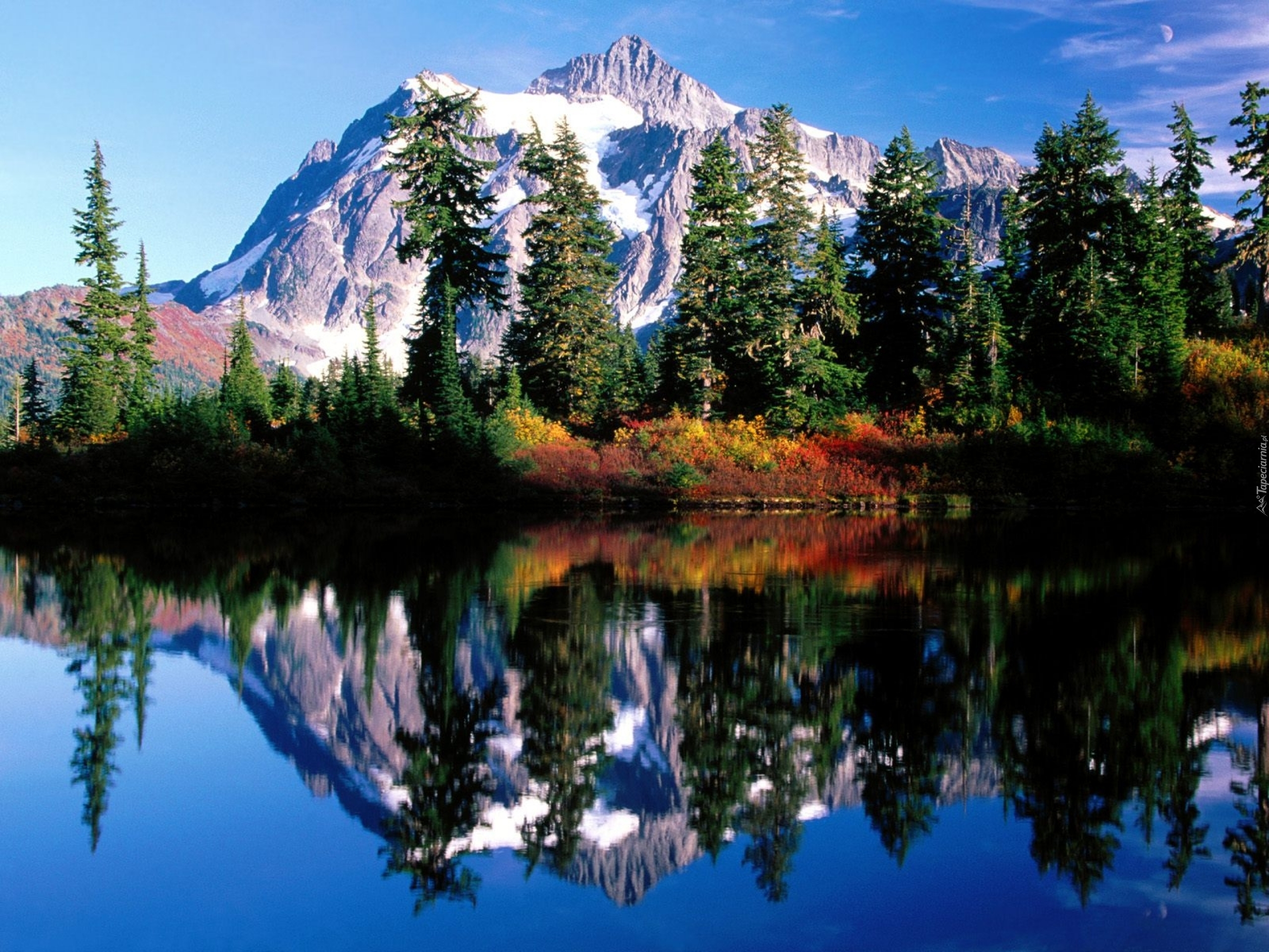 Edytor tapety: Jezioro, Góry, Świerki