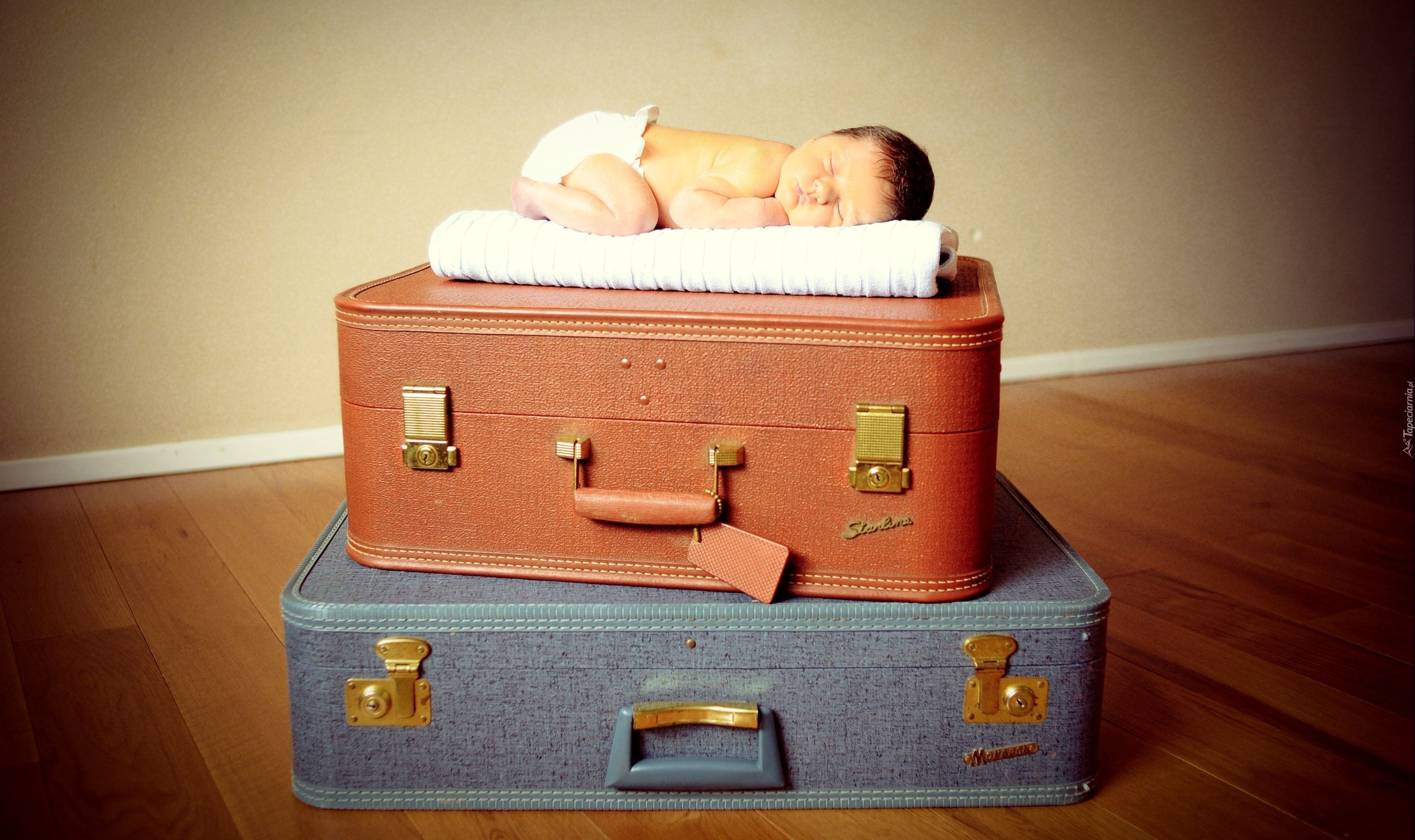 Edytor tapety: Spiące, Niemowlę, Walizki
