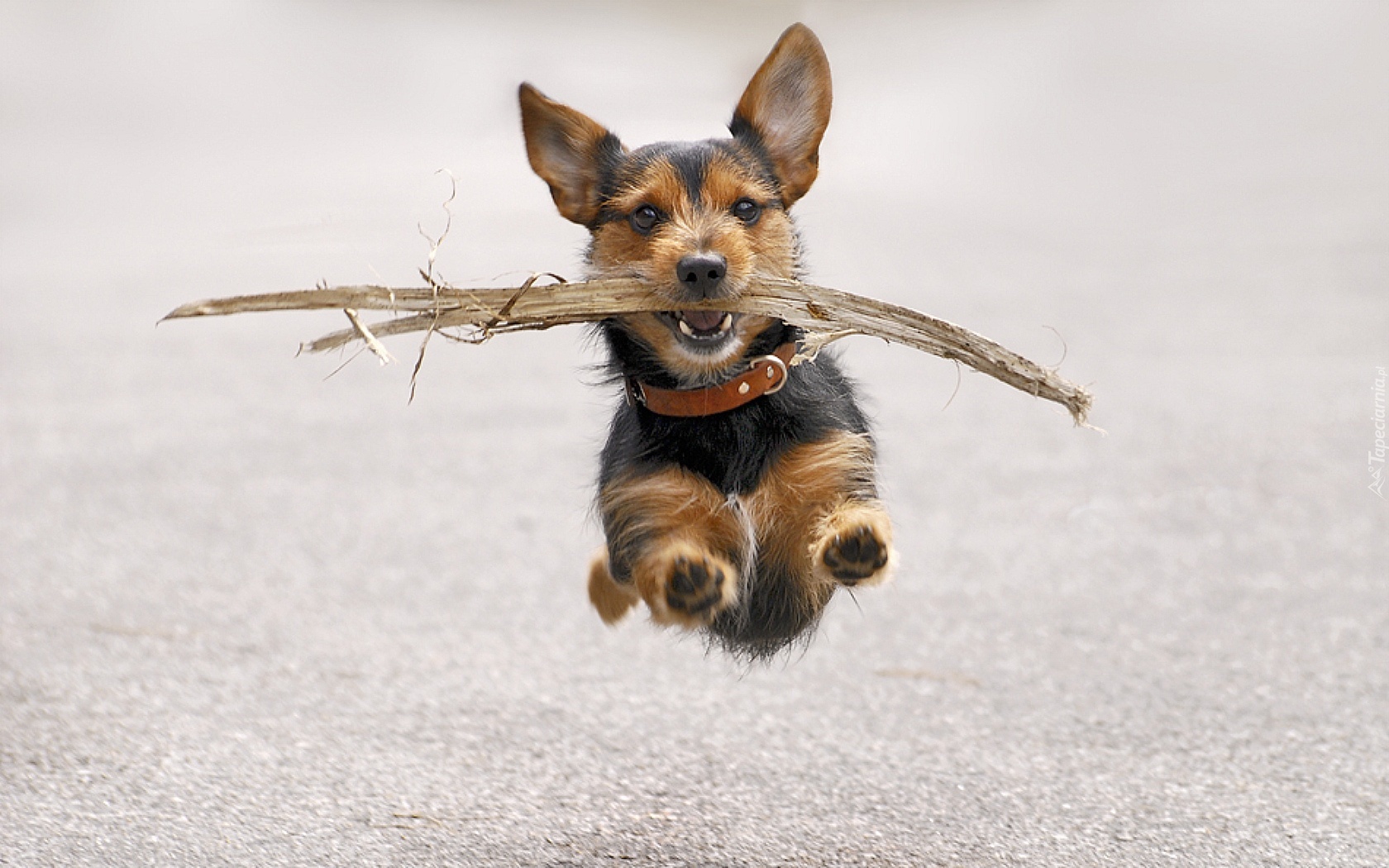 Edytor tapety: Mały, Piesek, Patyk, Obroża