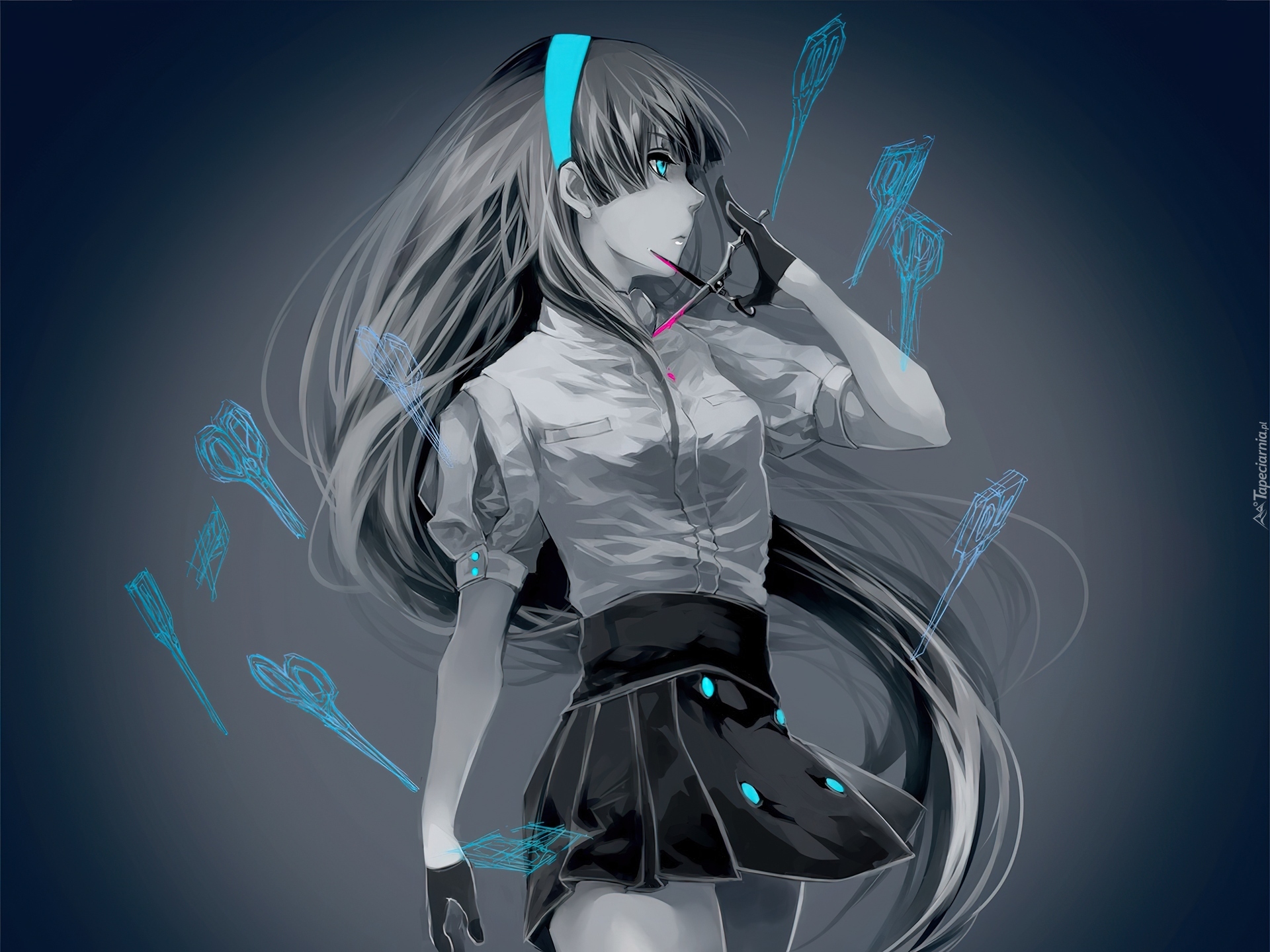 Edytor tapety: Dziewczyna, Nożyczki, Błękitne, Elementy
