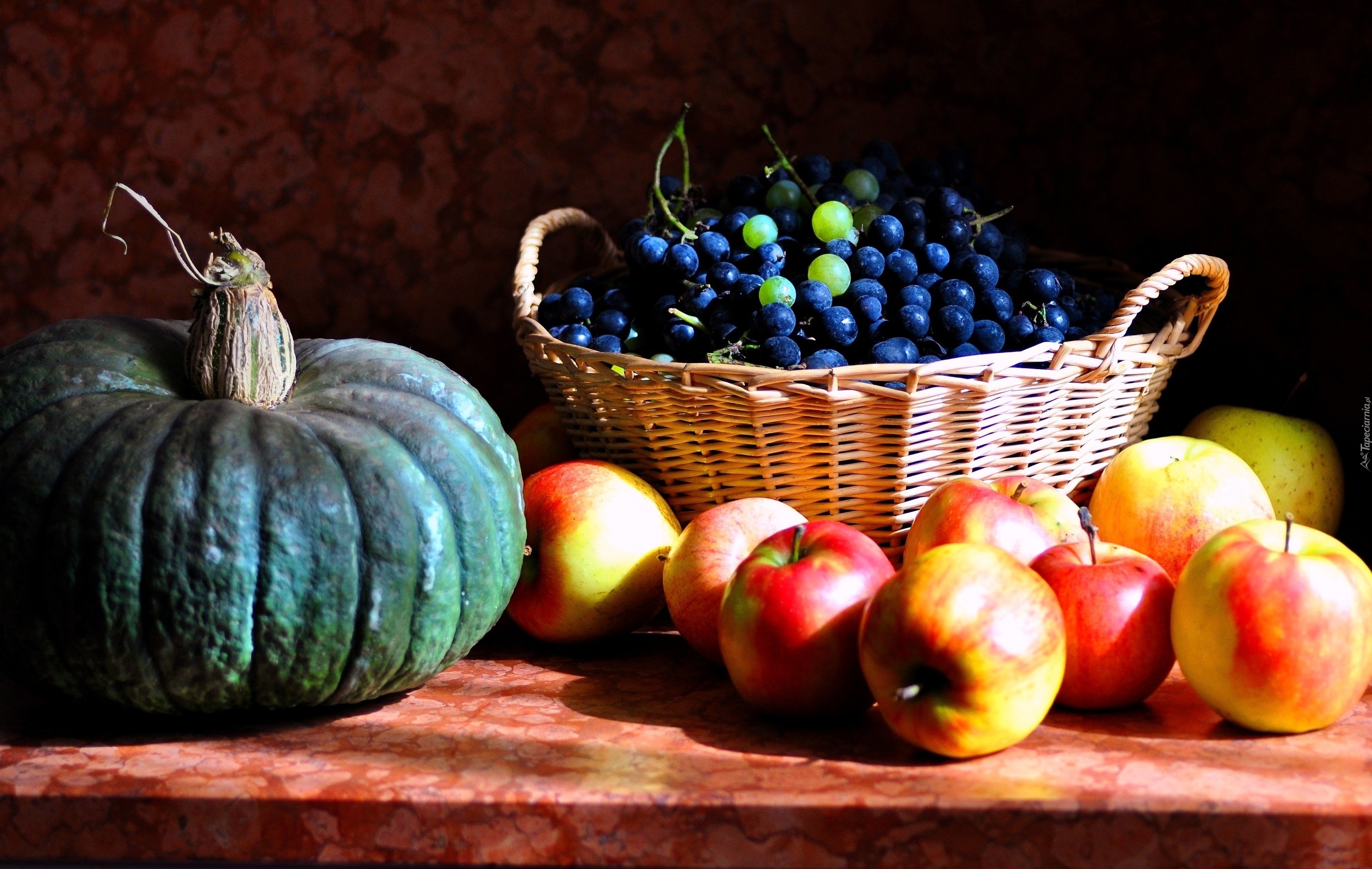 Edytor tapety: Dynia, Kosz, Winogrona, Jabłka