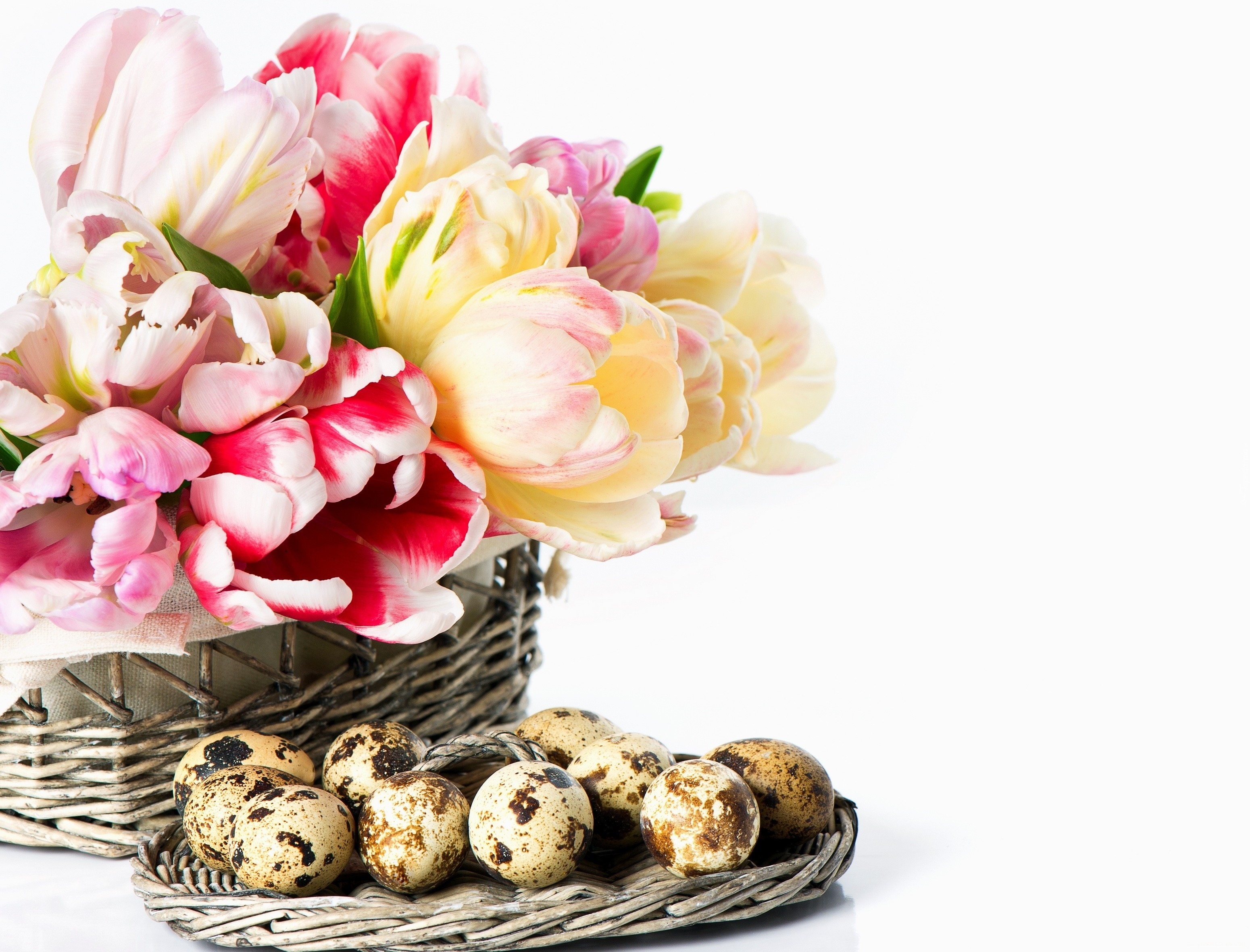 Edytor tapety: Przepiórcze, Jajka, Tulipany, Koszyk