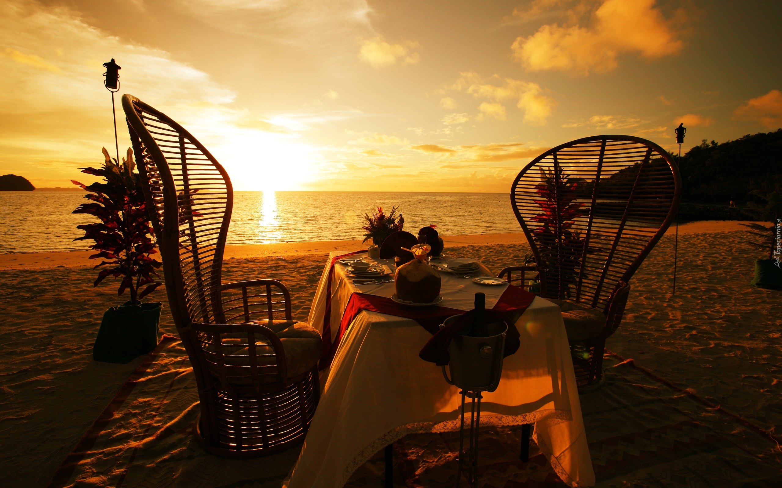 Edytor tapety: Zachód, Słońca, Plaża, Romantyczna, Kolacja