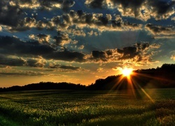 Edytor tapety: Zachód, Słońca, Chmury, Łąka