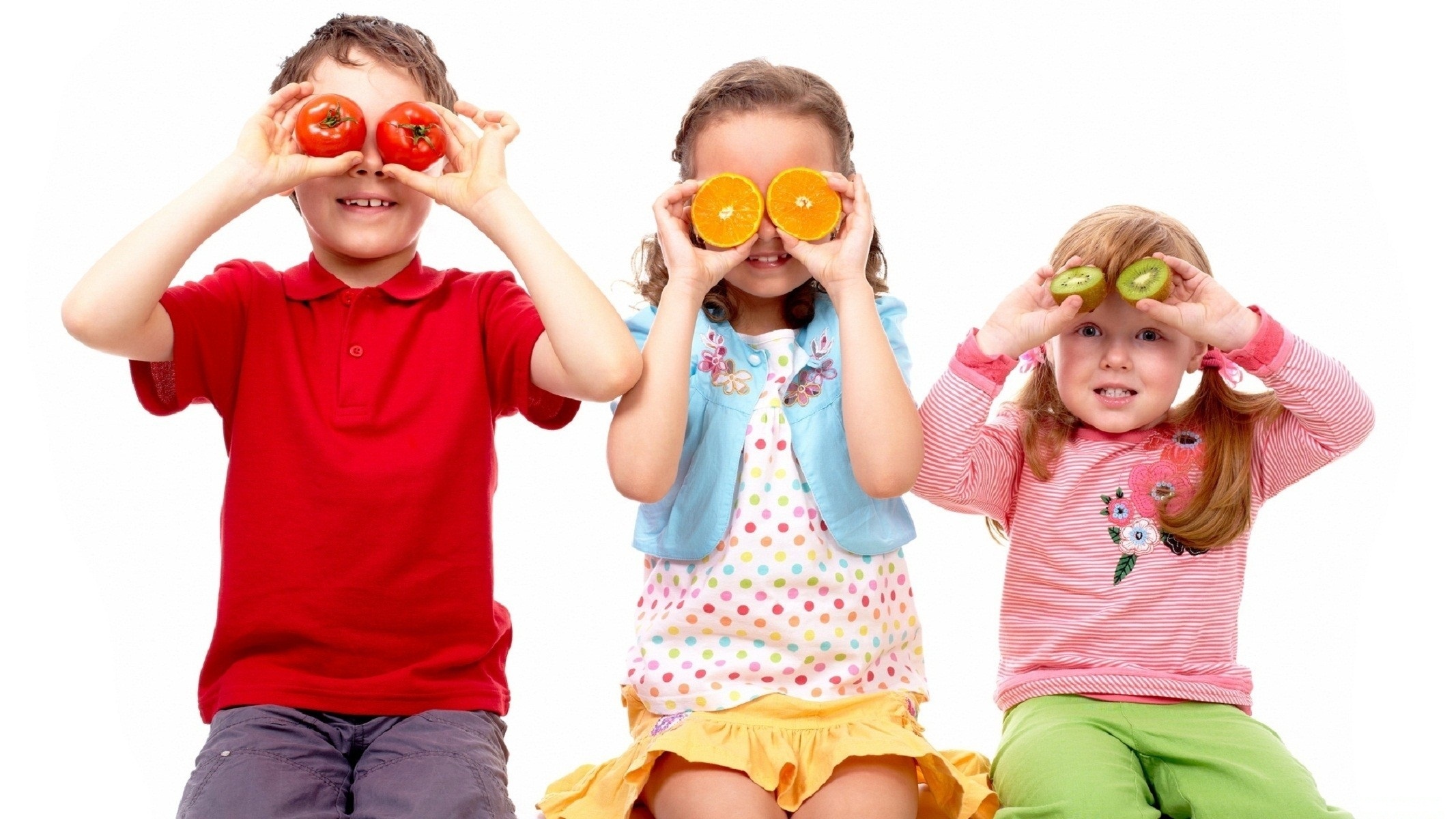 Edytor tapety: Dzieci, Zabawa, Zakryte, Oczy, Owoce