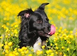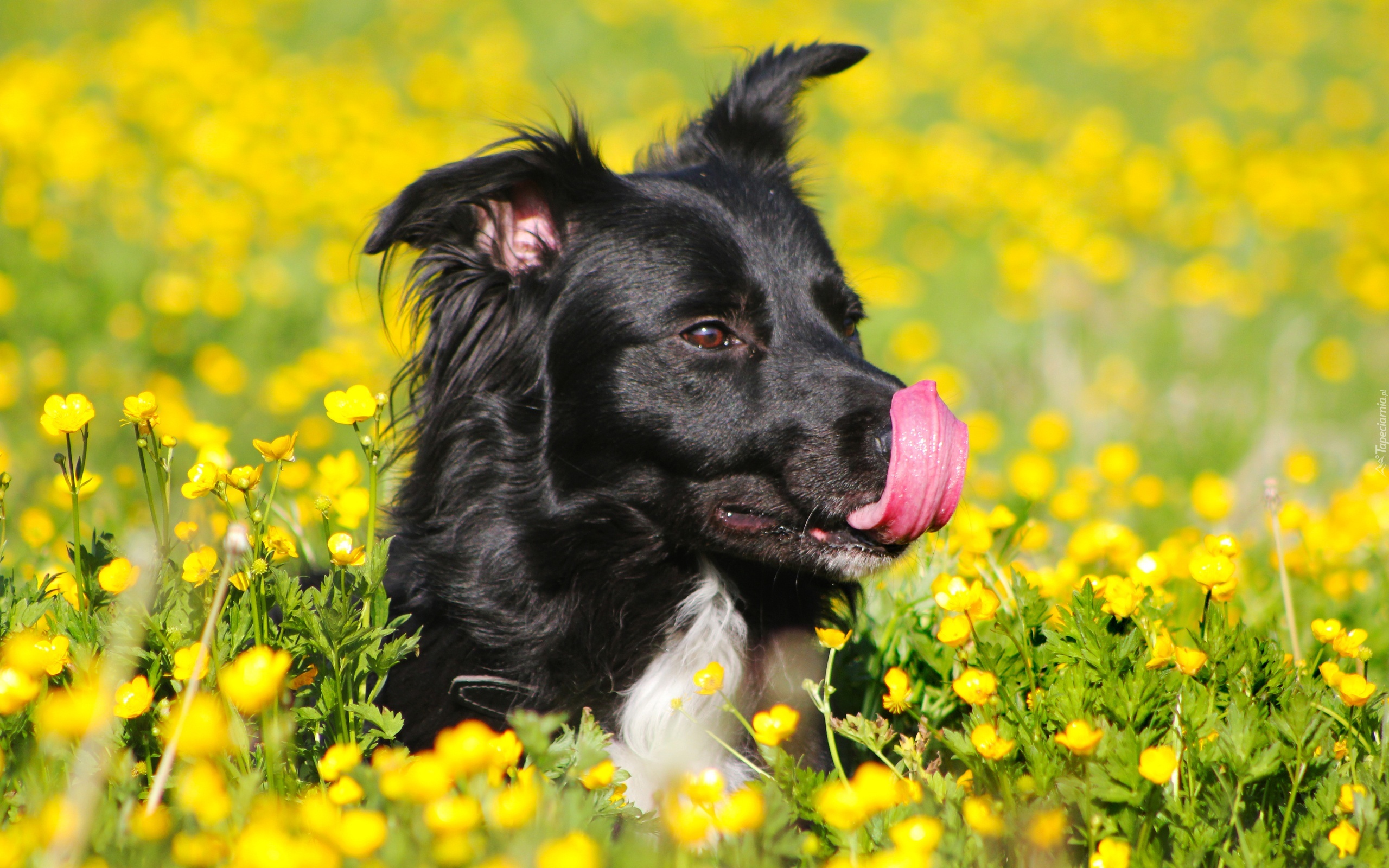 Edytor tapety: Pies, Łąka, Kwiaty, Kaczeńce