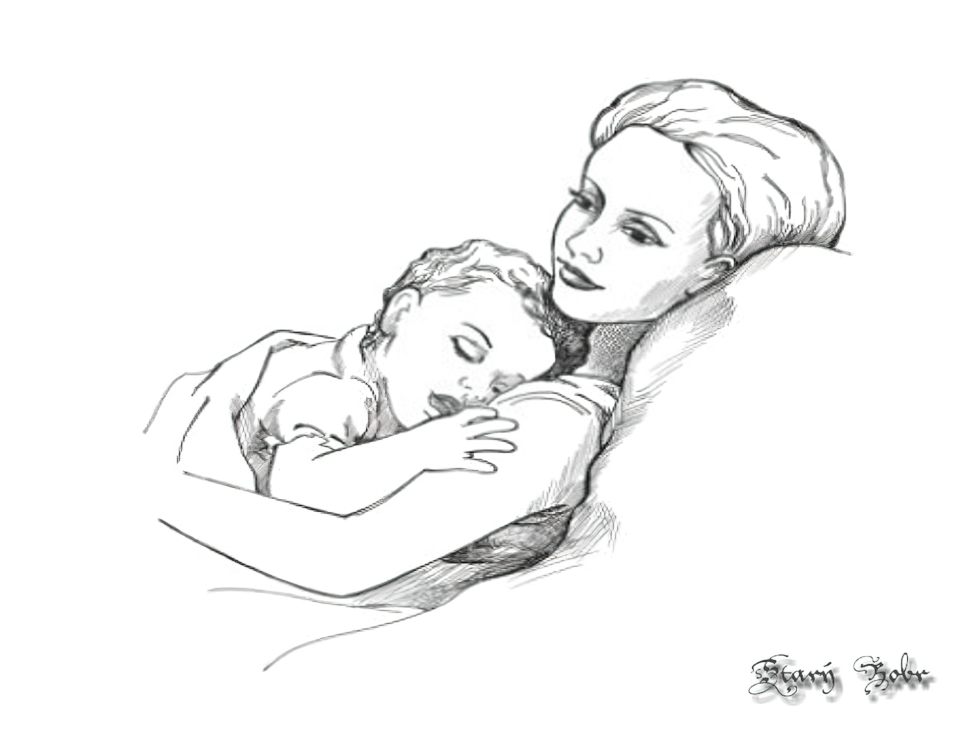 Edytor tapety: Matka, Śpiące, Dziecko, Szkic