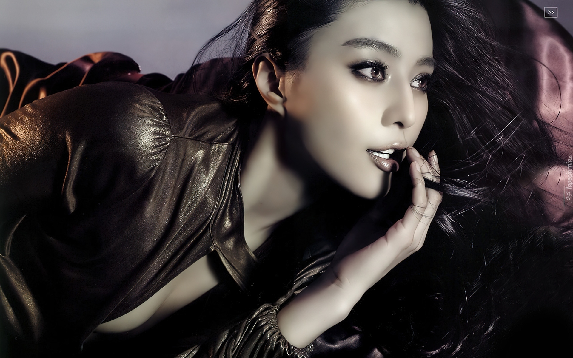 Edytor tapety: Kobieta, Makijaż, Skórzana, Kurtka