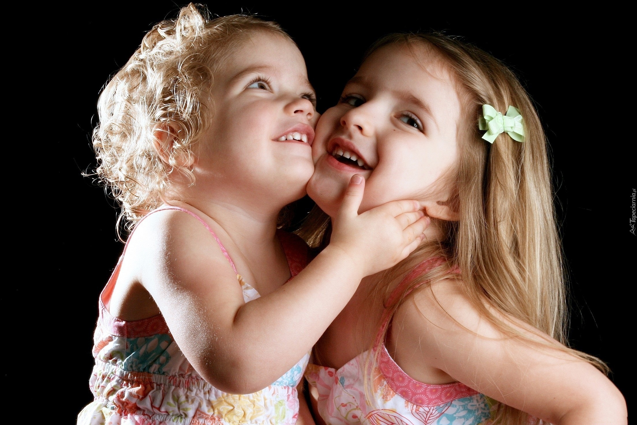 Edytor tapety: Dwie, Rozbawione, Dziewczynki, Uśmiech