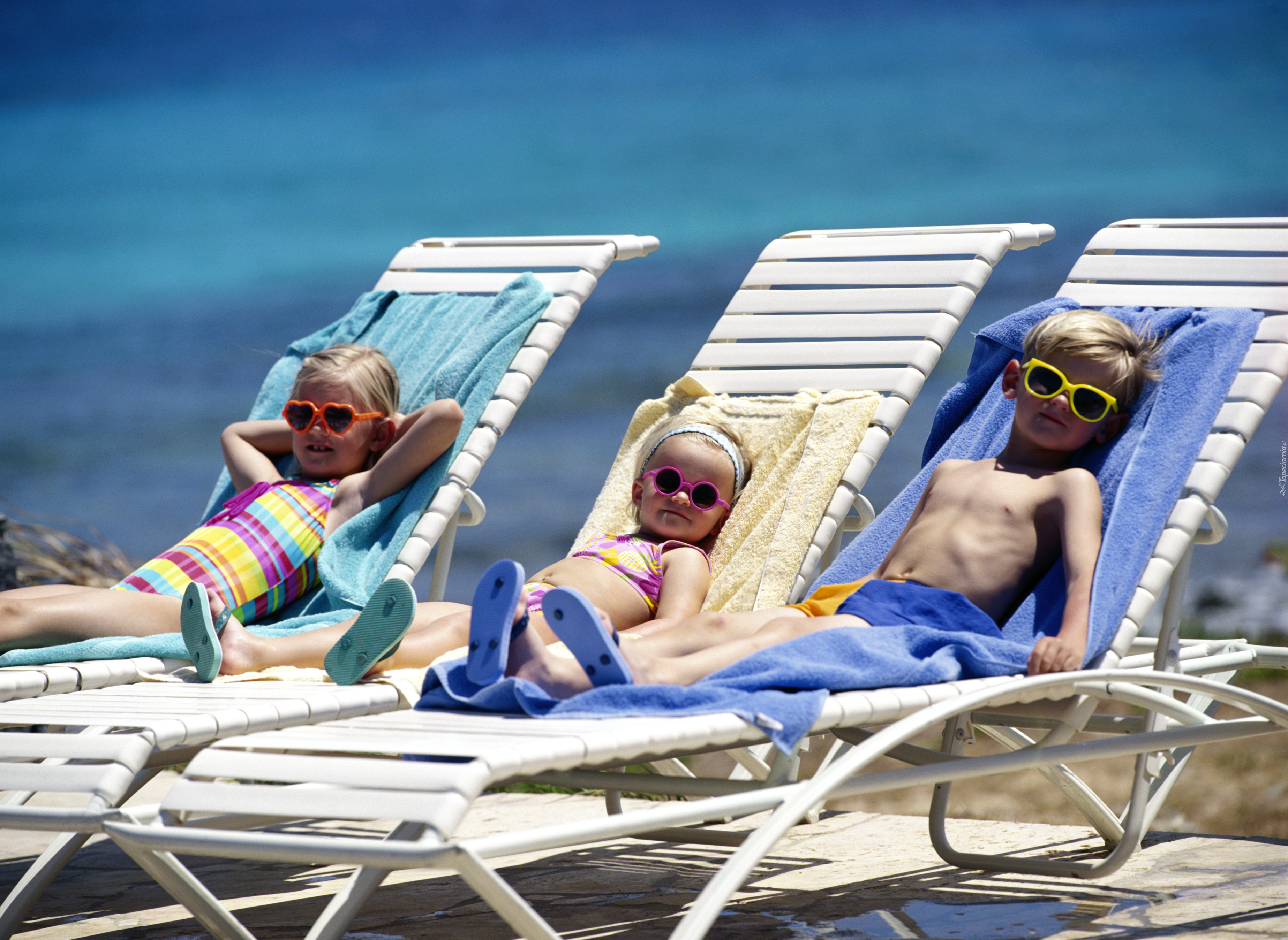 Edytor tapety: Dzieci, Plaża, Leżaki, Okularki, Wakacje