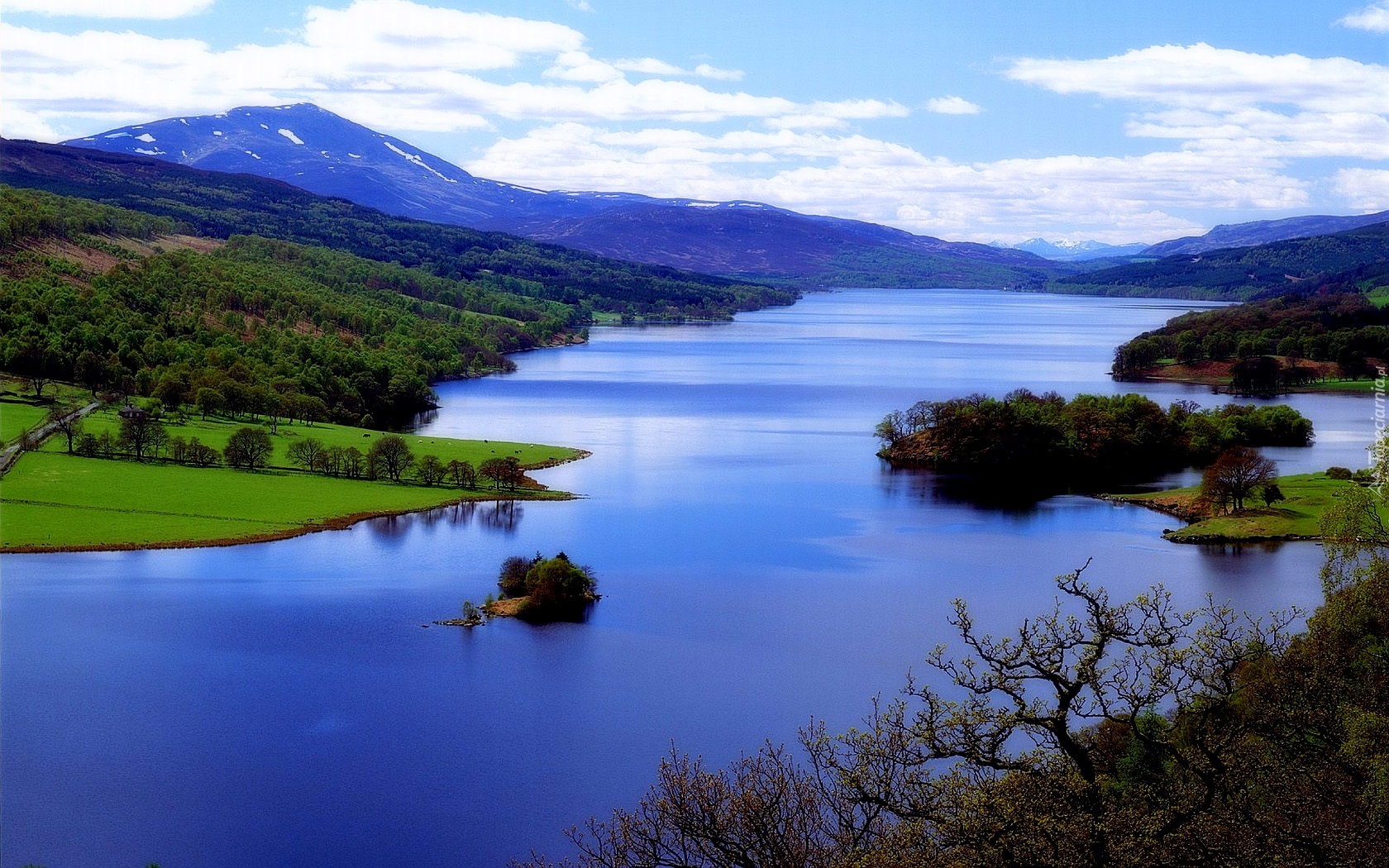 Edytor tapety: Rzeka, Wzgórza, Zieleń