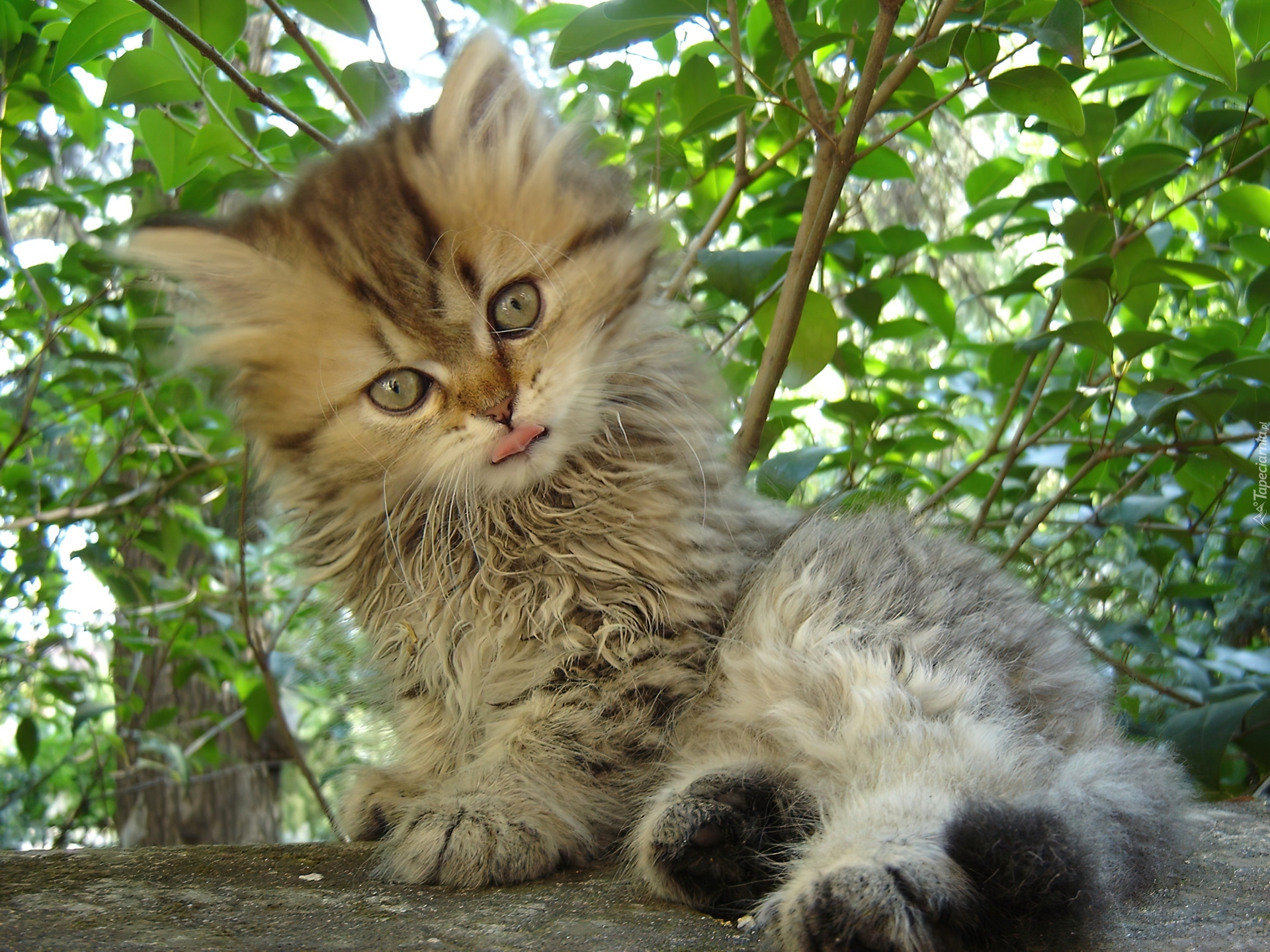 Edytor tapety: Mały, Kotek, Łapki, Języczek, Drzewa