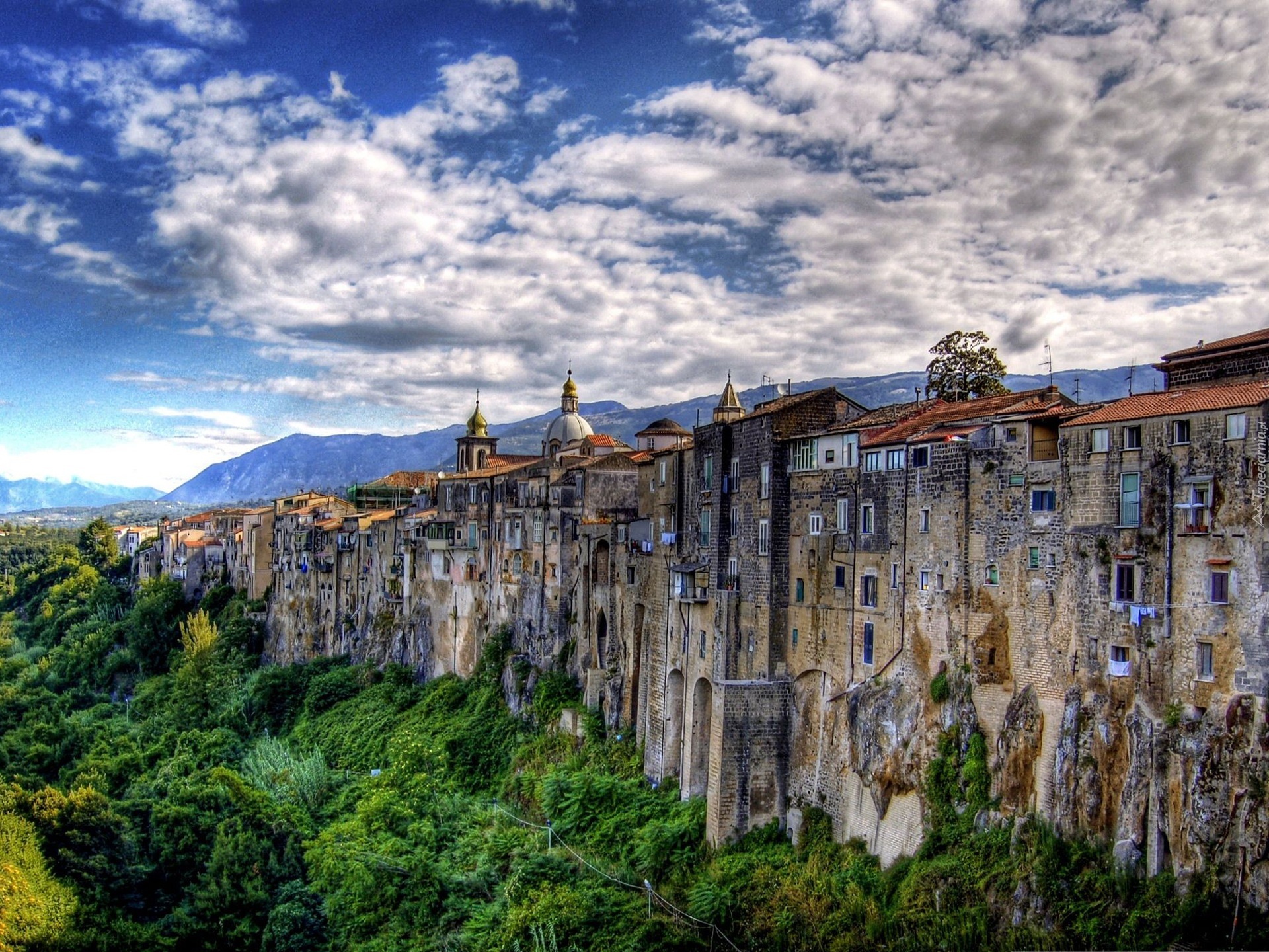 Edytor tapety: Zniszczone, Budynki, Chmury, Urwisko