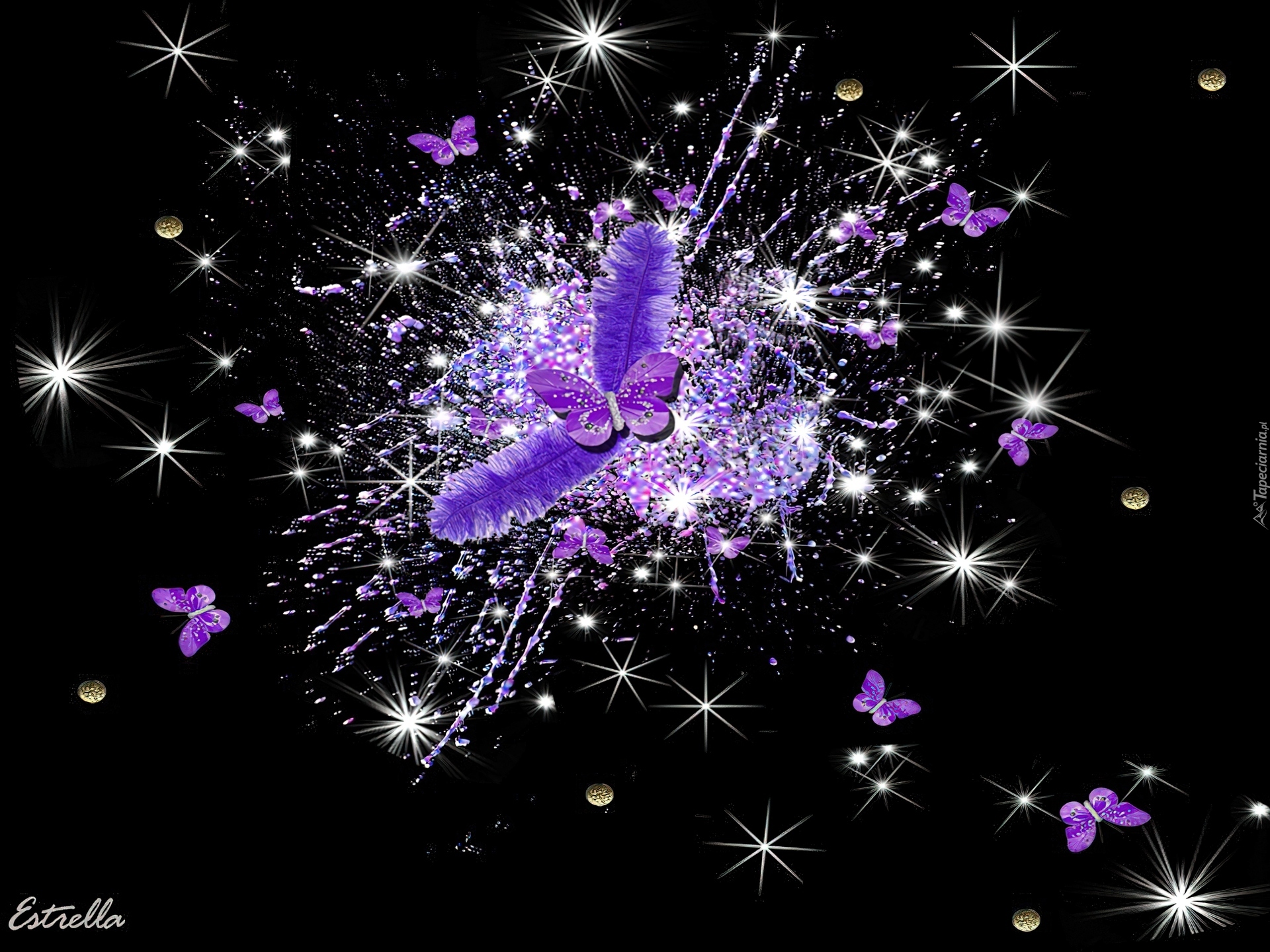 Edytor tapety: Fioletowe, Motylki, Błysk, Czarne, Tło