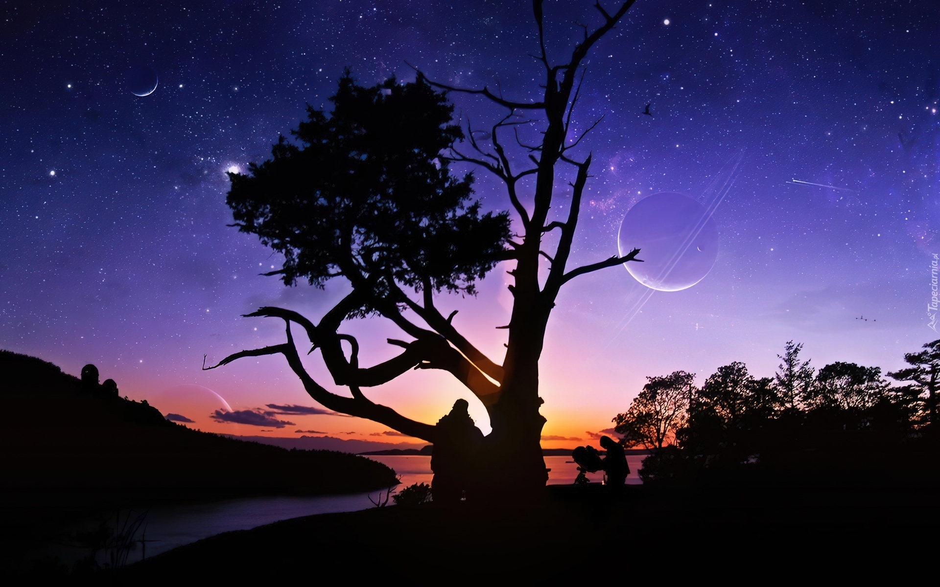 Edytor tapety: Niebo, Planety, Człowiek, Noc