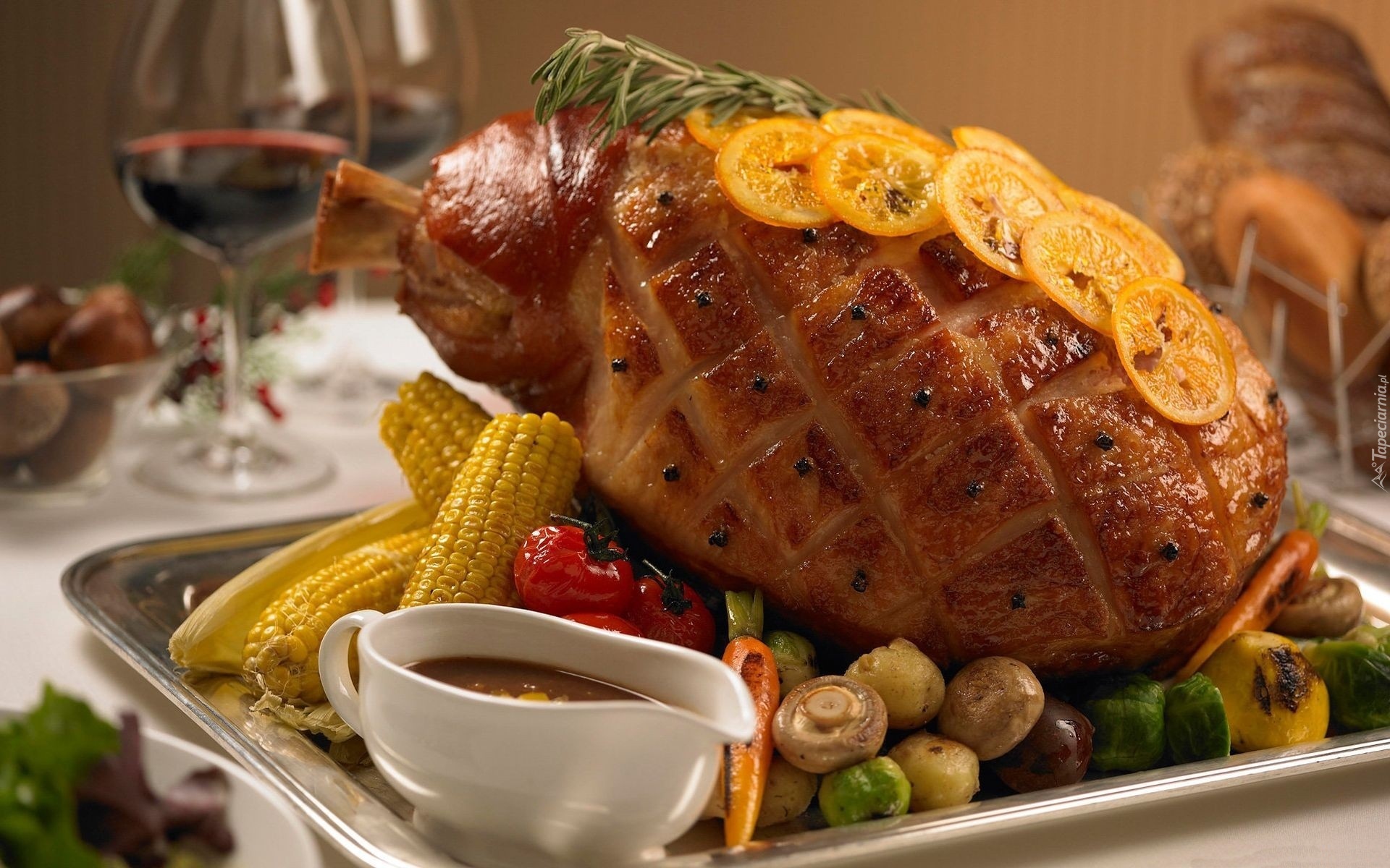 Edytor tapety: Pieczona, Szyneczka, Warzywa, Sos