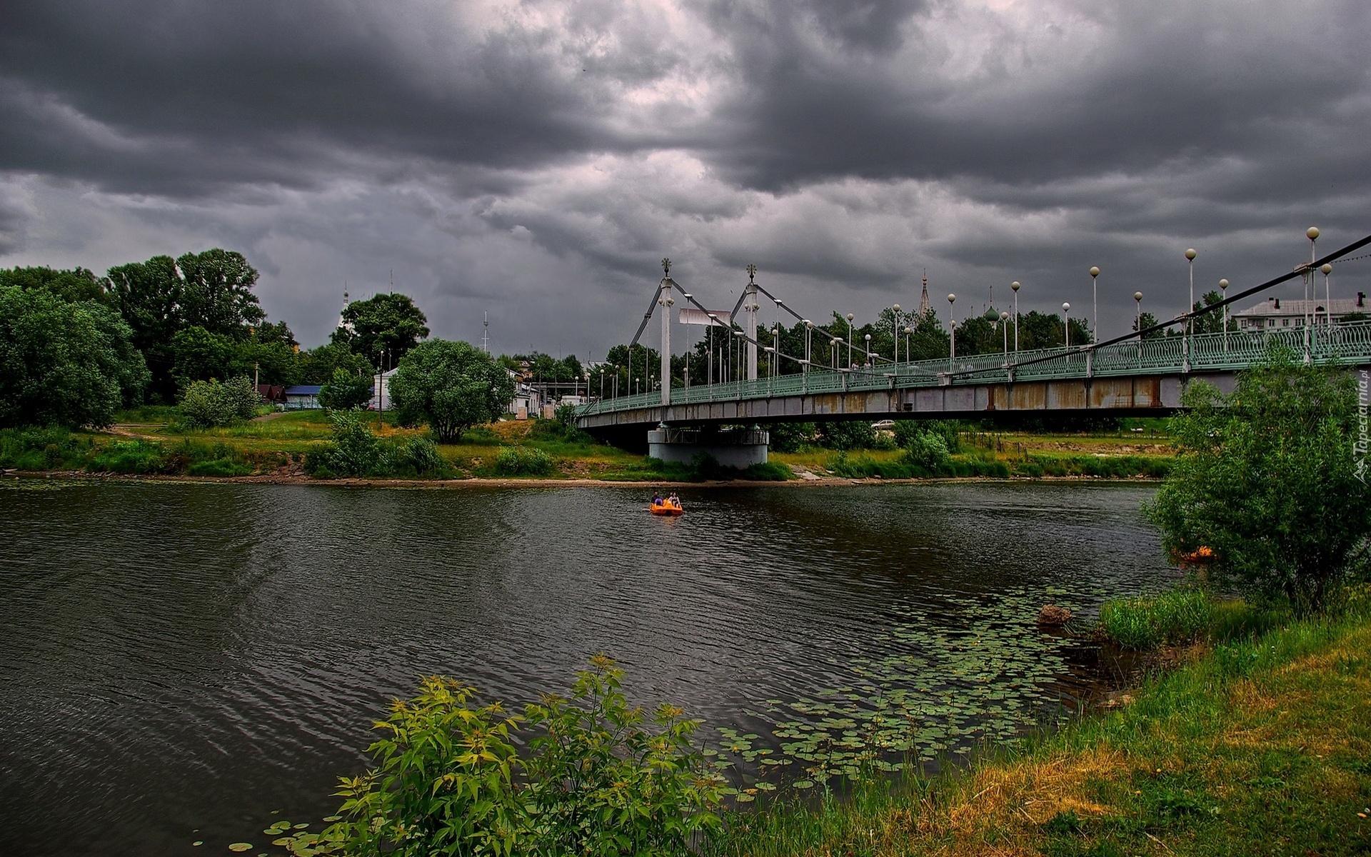 Edytor tapety: Rzeka, Most, Chmury, Zieleń