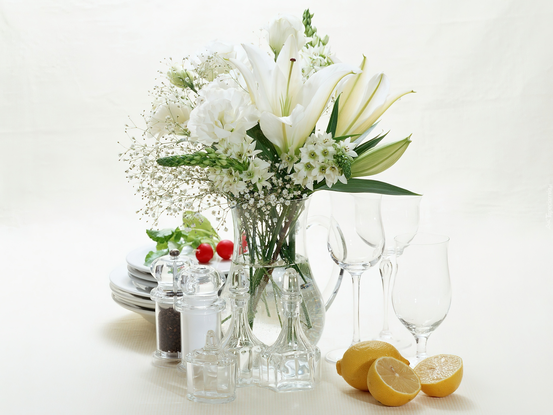 Edytor tapety: Wazon, Kwiaty, Kieliszki