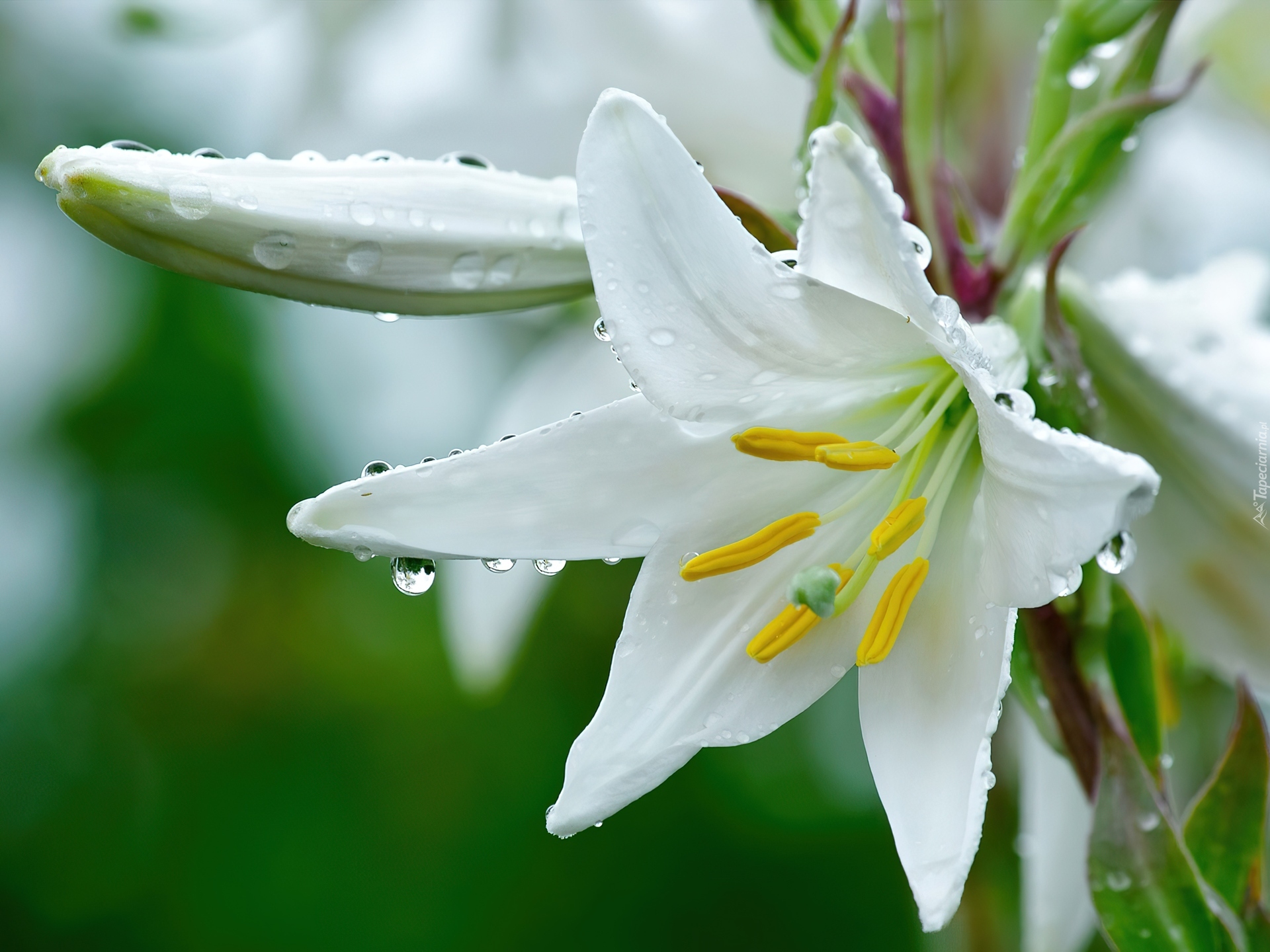 Edytor tapety: Biała, Lilia, Krople, Wody