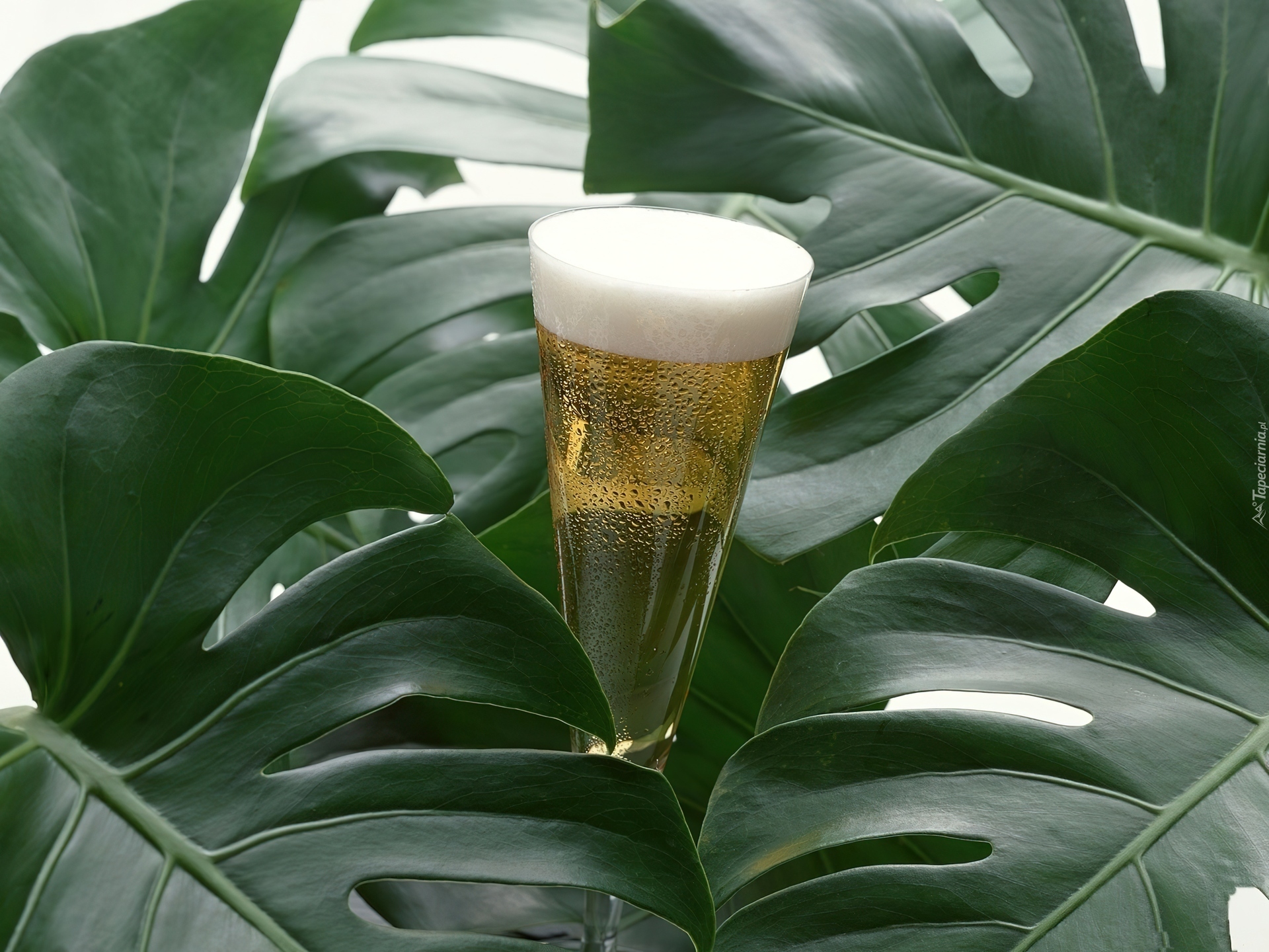 Edytor tapety: Kieliszek, Szampana, Liście, Rododendronu
