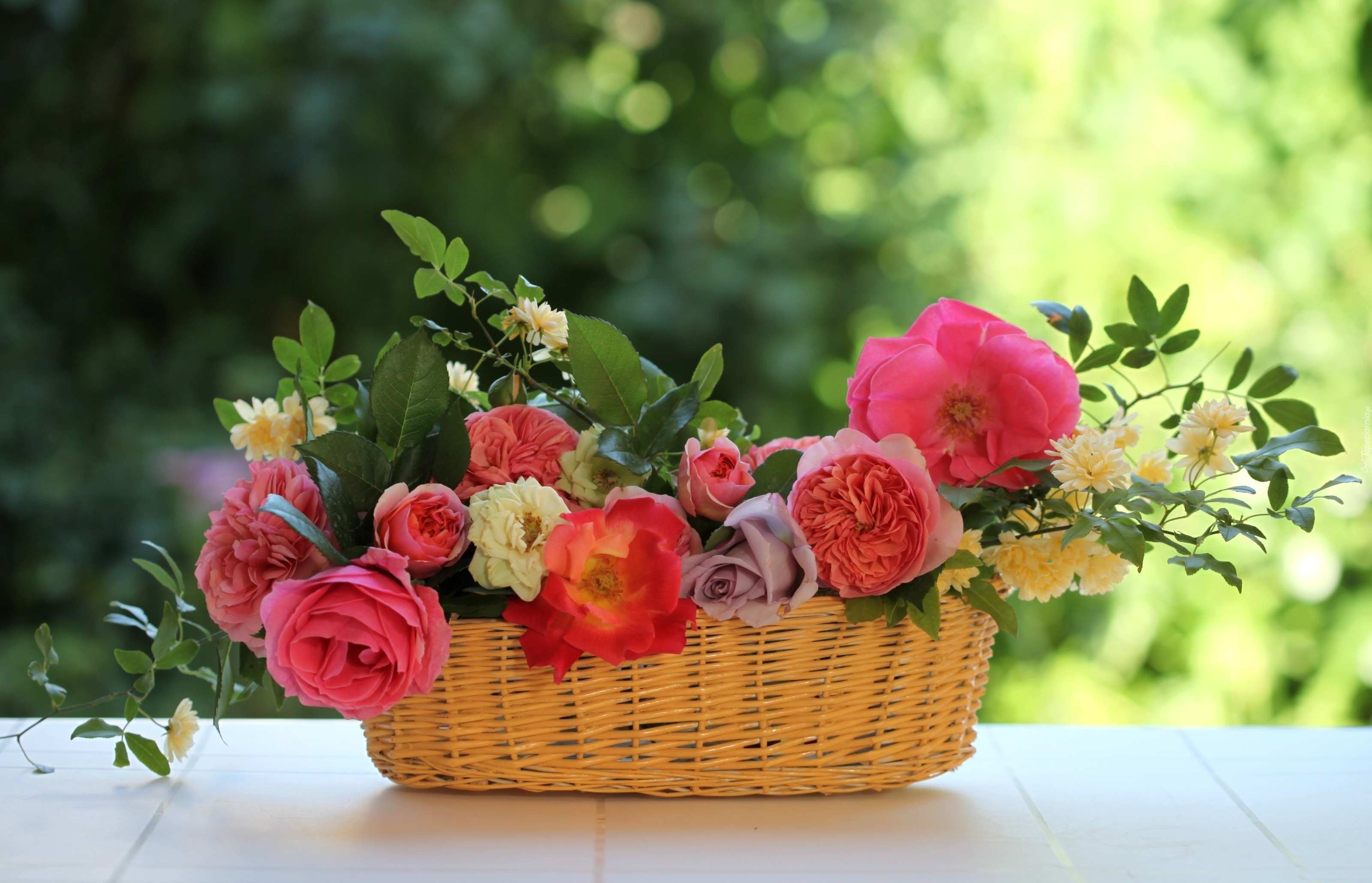 Edytor tapety: Wiklinowy, Kosz, Róże