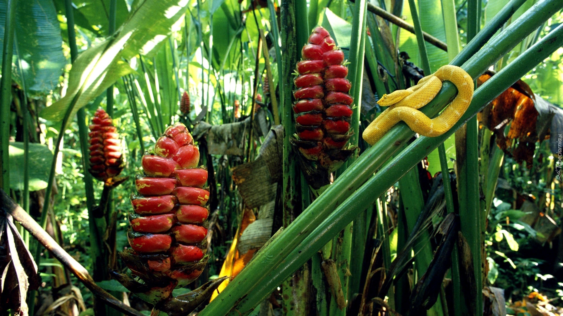 Edytor tapety: Żółty, Wąż, Grzechotnik, Żararaka rogata, Rośliny