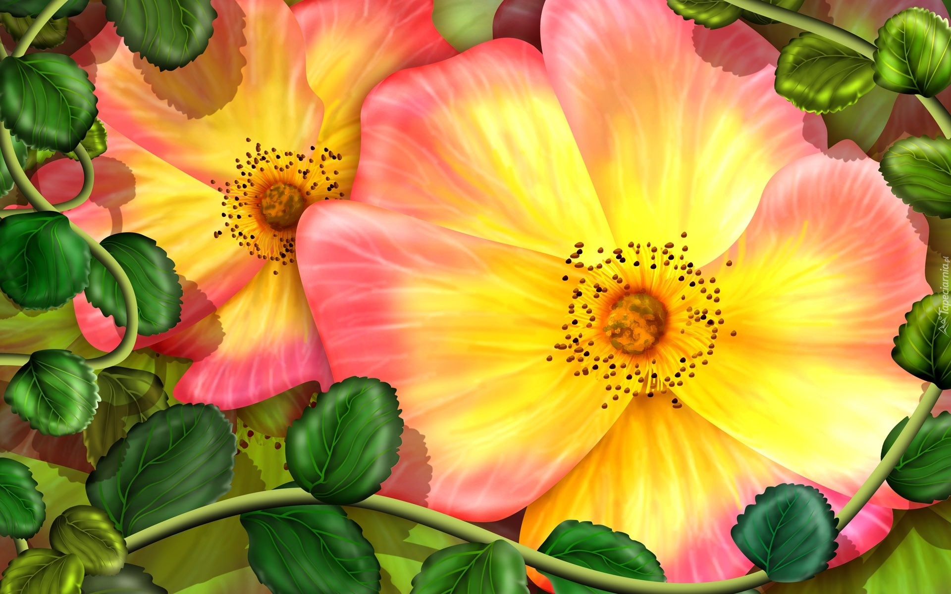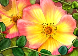 Edytor tapety: Żółto, Różowe, Kwiatki, Liście, Art