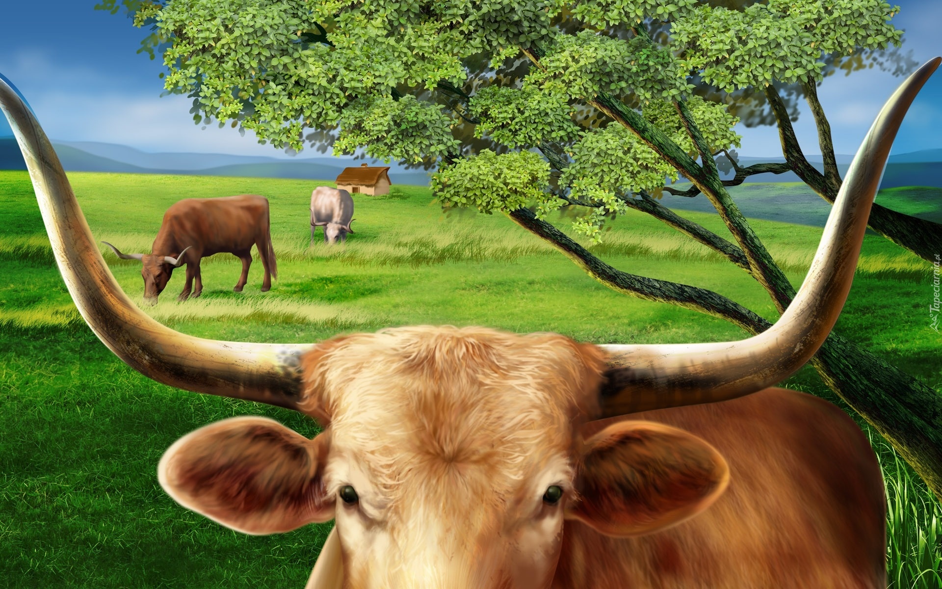 Edytor tapety: Krowy, Łąka, Art