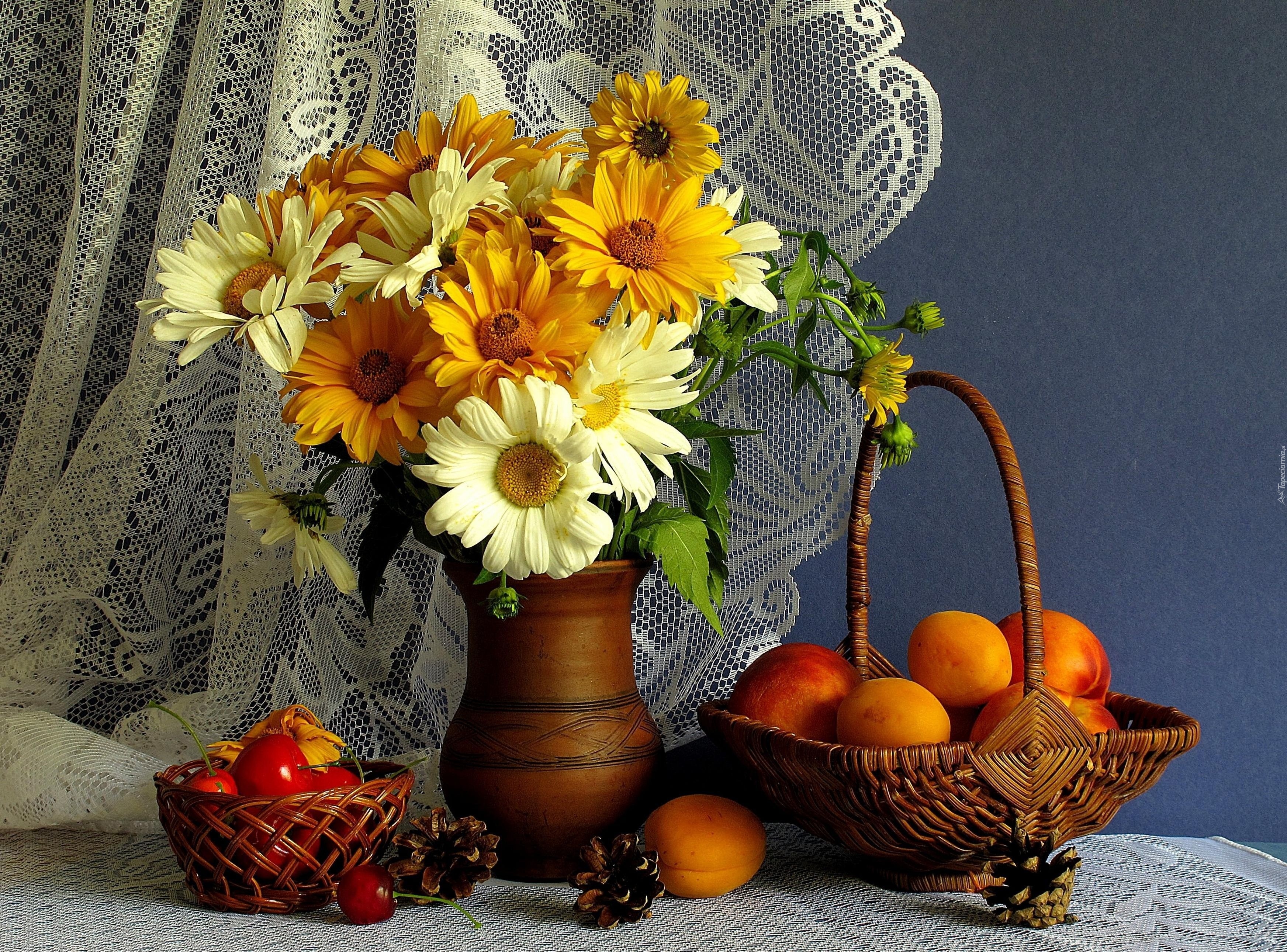 Edytor tapety: Margerytki, Pomarańcze, Koszyk