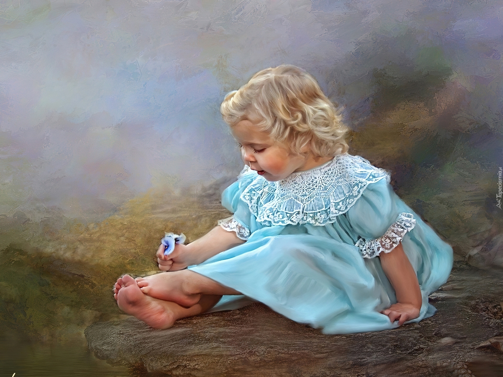 Edytor tapety: Bosa, Dziewczynka, Blondyneczka, Niebieska, Sukienka, Donald Zolan