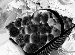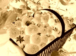 Edytor tapety: Biały, Koszyk, Dojrzałe, Truskawki, Listki