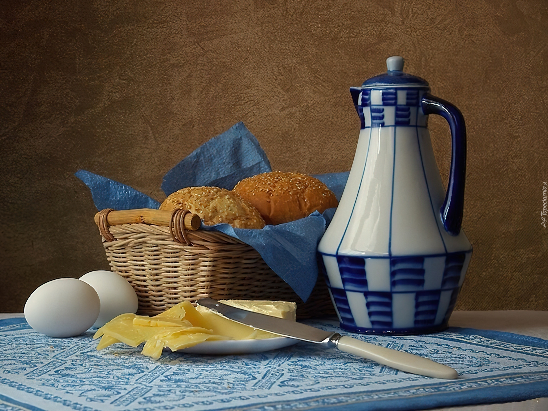 Edytor tapety: Jajka, Ser, Żółty, Bułeczki, Śniadanie