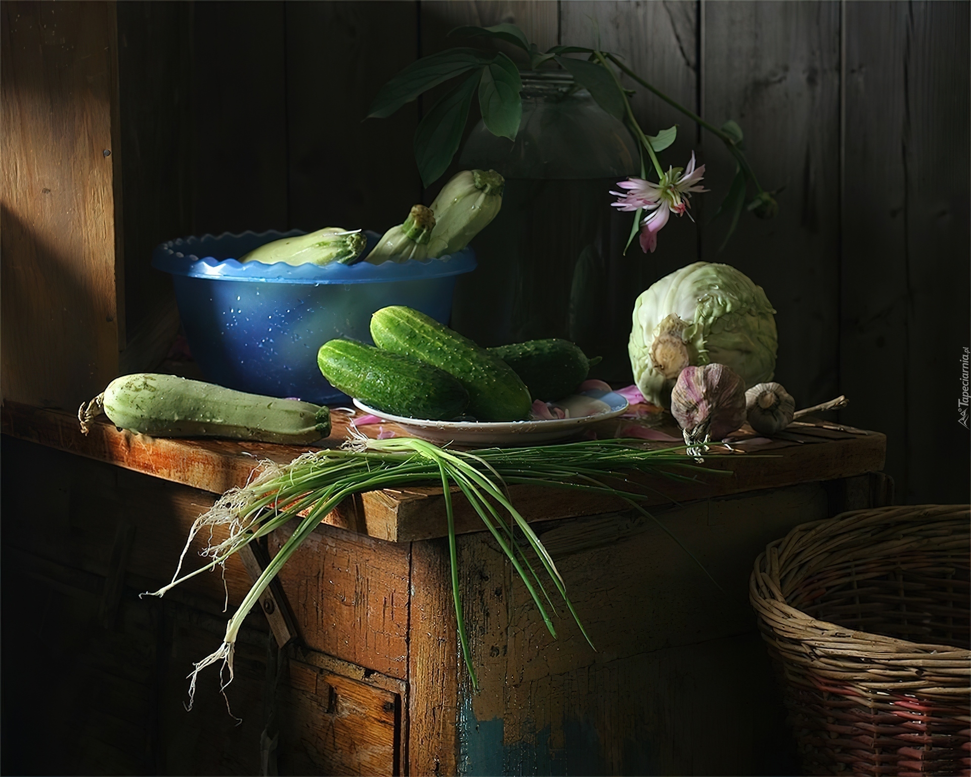 Edytor tapety: Kapusta, Ogórki, Szczypiorek, Cukinia, Kosz