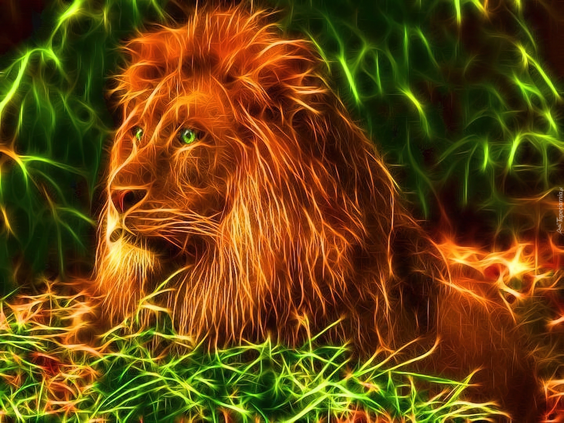 Edytor tapety: Lew, Grzywa, Fractalius